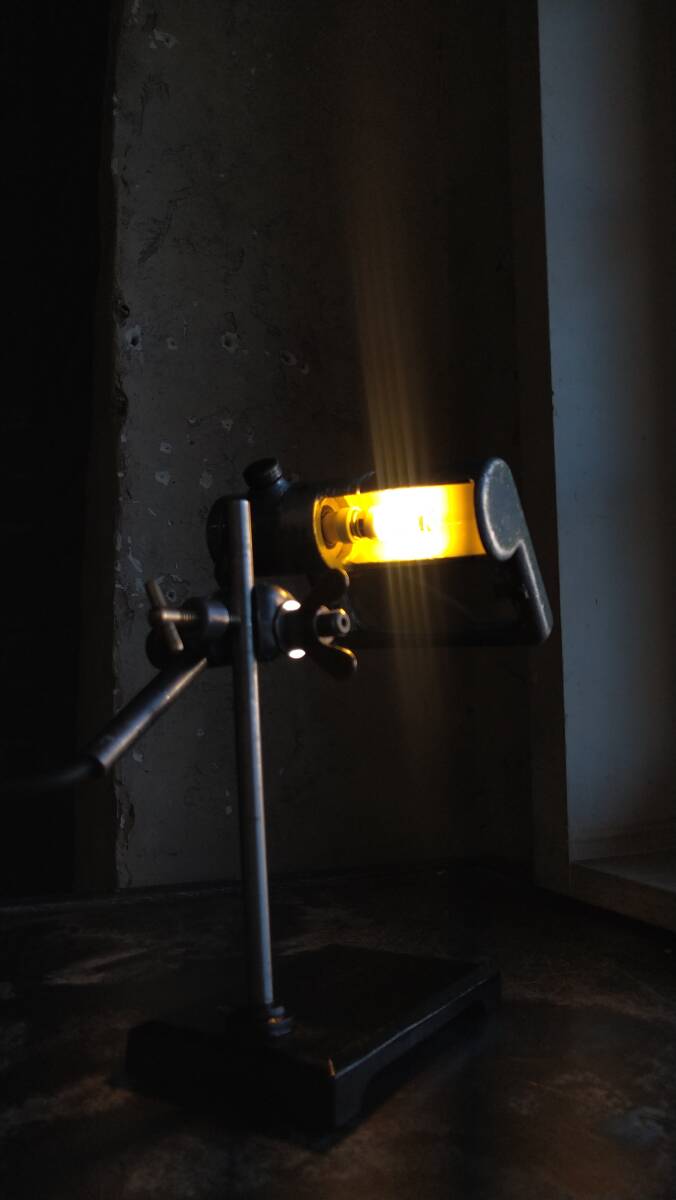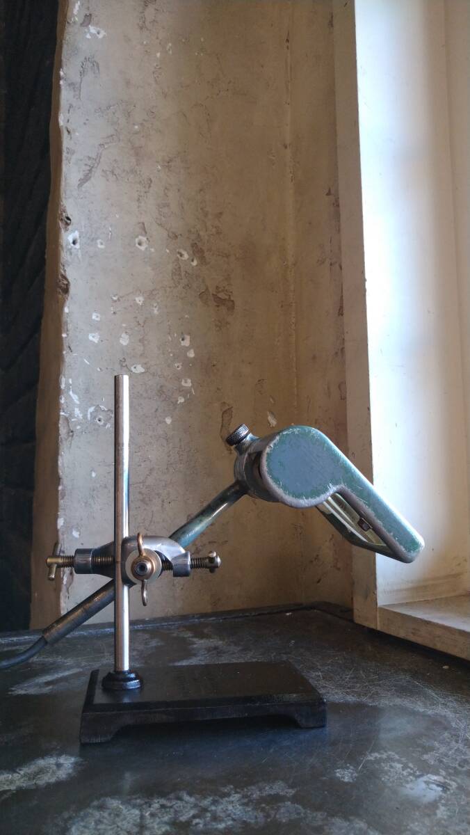 英国製のルーペ付きランプをラボスタンドに装着したルーペ付きランプです。