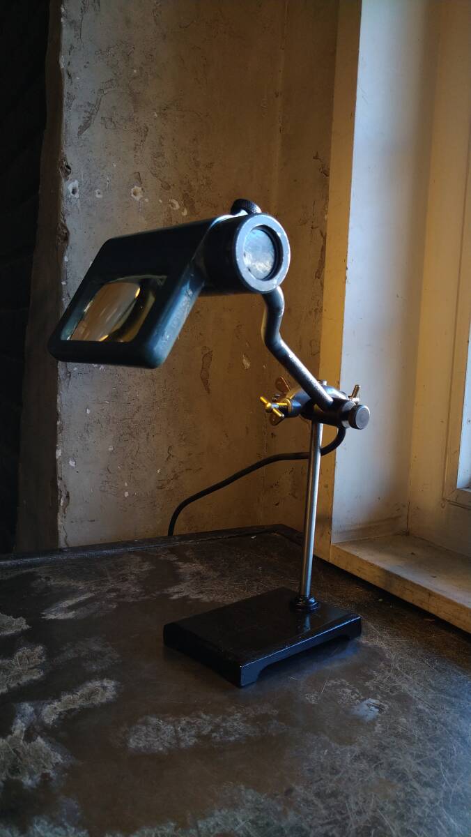 英国製 ルーペ付きランプ ラボスタンド ビンテージ インダストリアル WATCHMAKER'S TASK/MAP READING Lamp Made in England