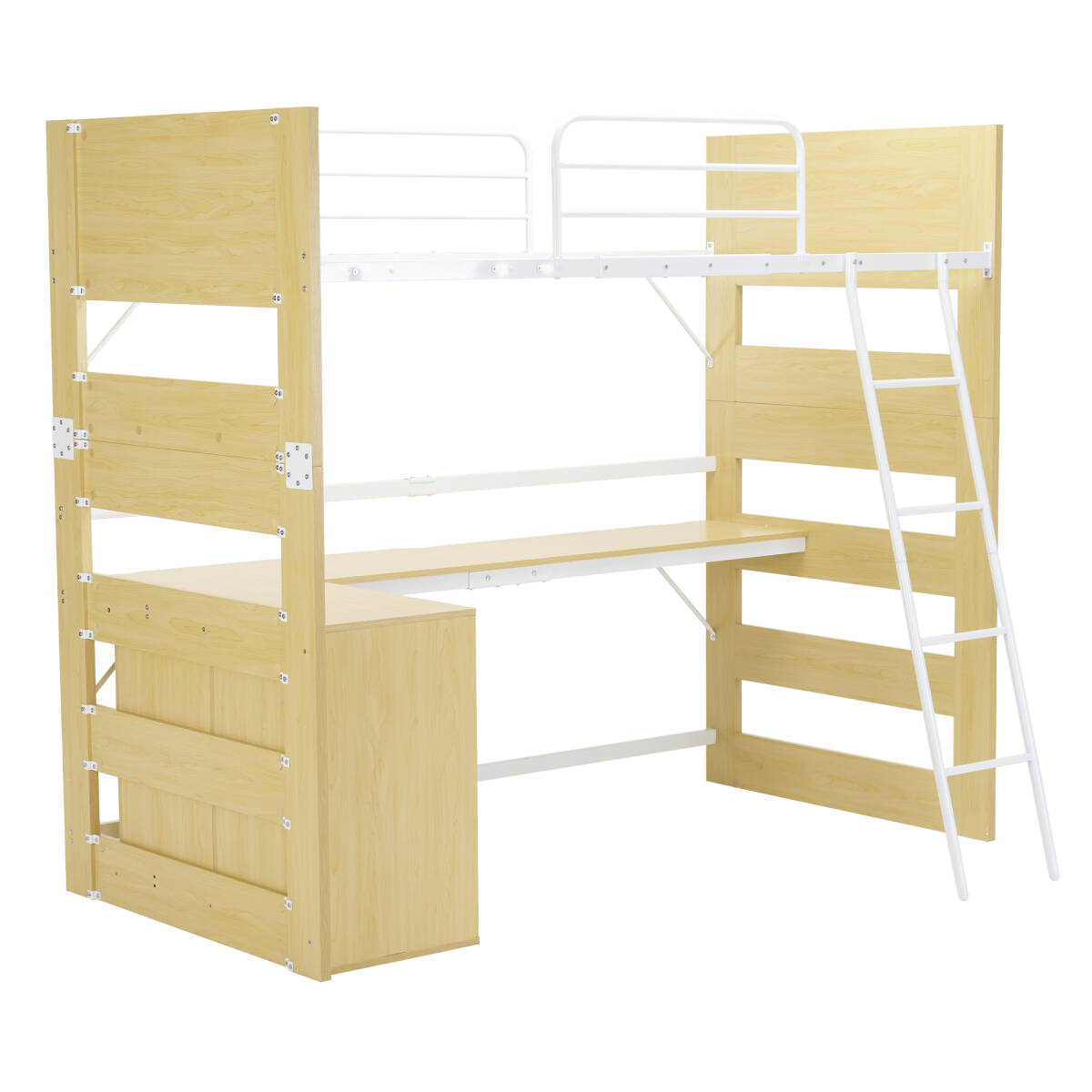 ロフトベッド 頑丈 階段 天然木 パイン材 収納 シングル デスク付き 北欧風 大人 一人暮らし 上下分割可能 ベッド ナチュラルxホワイト