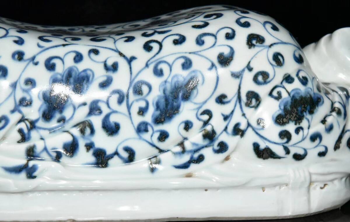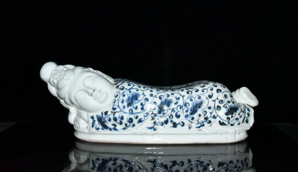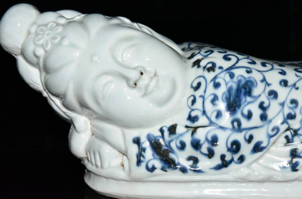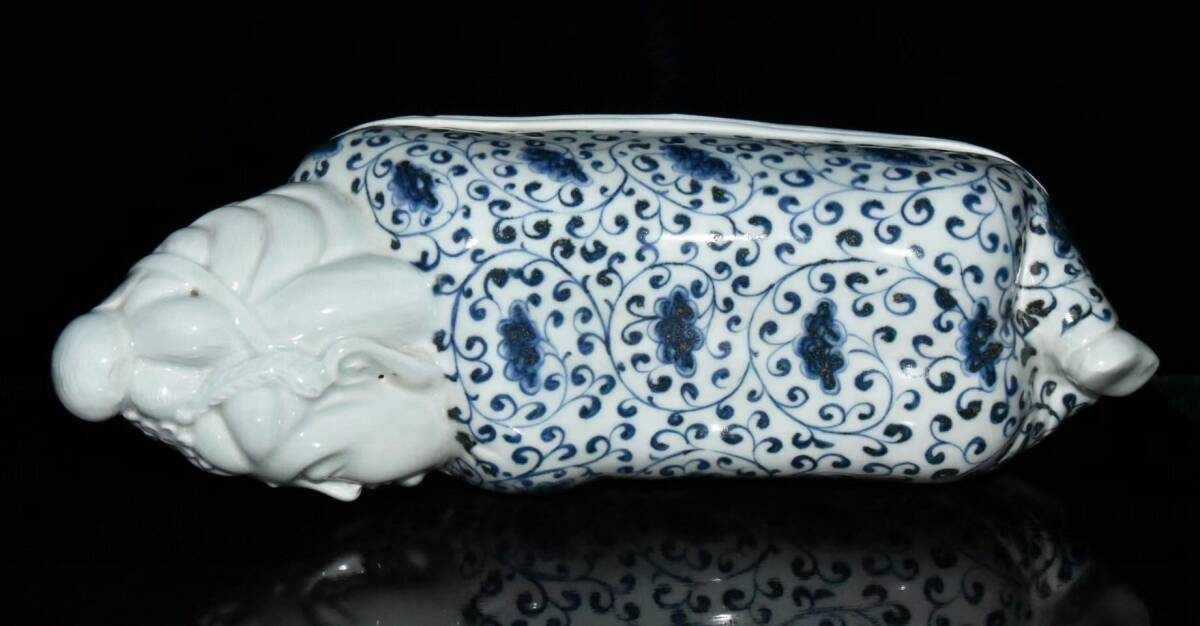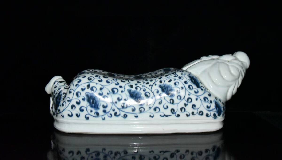【超珍館蔵】元 古陶瓷品 青花 纏枝花卉紋 觀音枕 陶藝 古賞物 古董品 古美術品 時代物 旧家蔵出 稀少珍蔵品