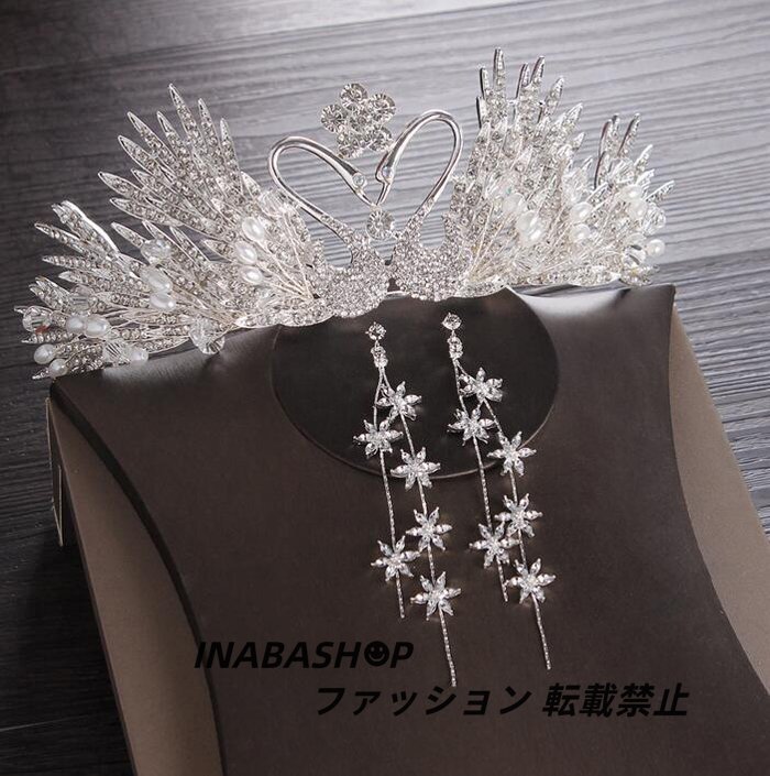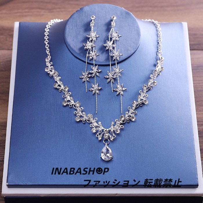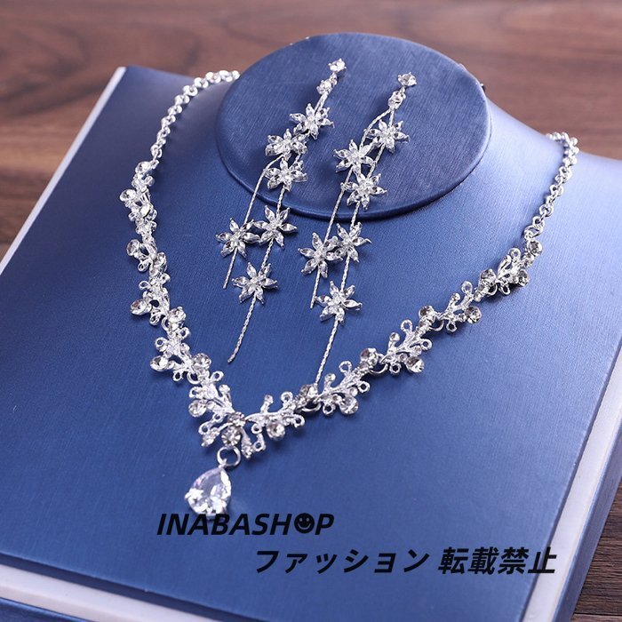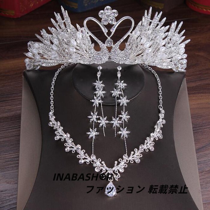 (3点セット)ウェディングジュエリーアクセサリー ティアラ ネックレス イヤリング ウェディング小物 ヘッドドレス ブライダルジュエリー