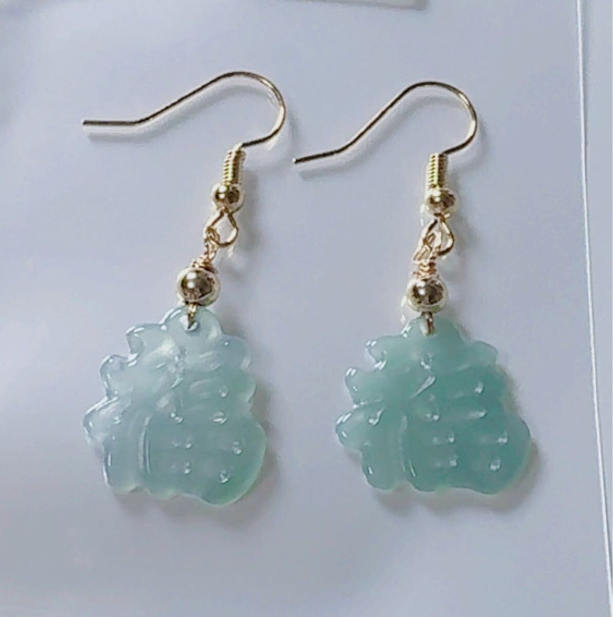 R2M-0319天然本翡翠《本物保証》 藍水翡翠ピアス 一点物 魔除け 昇進 成功 風水 金運 財運 幸運 幸福 縁起物 パワーストーン