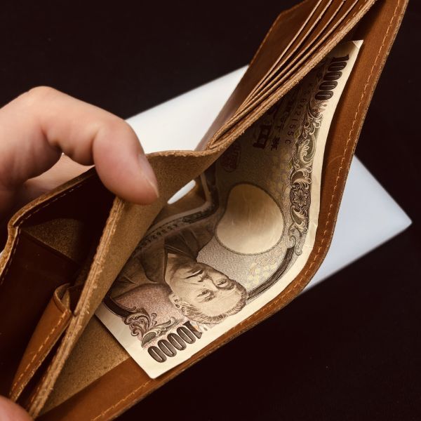 【経年変化を楽しめるマッドな質感のヌバックレザーを使用した二つ折り財布財布】