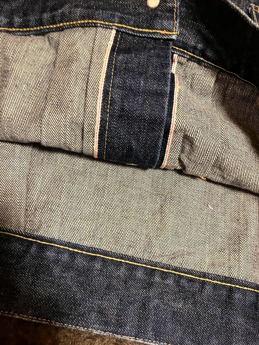 状態については、まだリジッドに近い濃紺の色味がしっかりと残っており、試運転程度の着用で、これから本格的なアタリやエイジングが出てくる段階です。これからじっくりと時間をかけてデニムを育てていきたい方にとっては、理想的なコンディションと言えるでしょう。