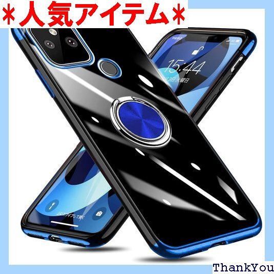 Google Pixel 5A 5G ケース リング付き グーグル ピクセル 5a クリアカバー 耐衝撃 スタンド機能 透明 TPU 車載ホルダー対応 落下防止 防塵 薄型 軽量 一体型 変形防止 全面保護カバー グーグル ケース 青 W-YXZH-38-04 75