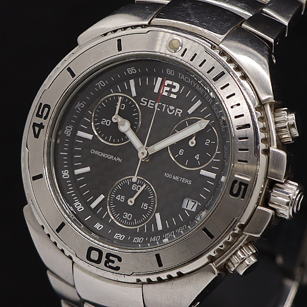 1円 稼働 セクター QZ ブラック文字盤 クロノグラフ メンズ腕時計 8091100 8JWY KMR