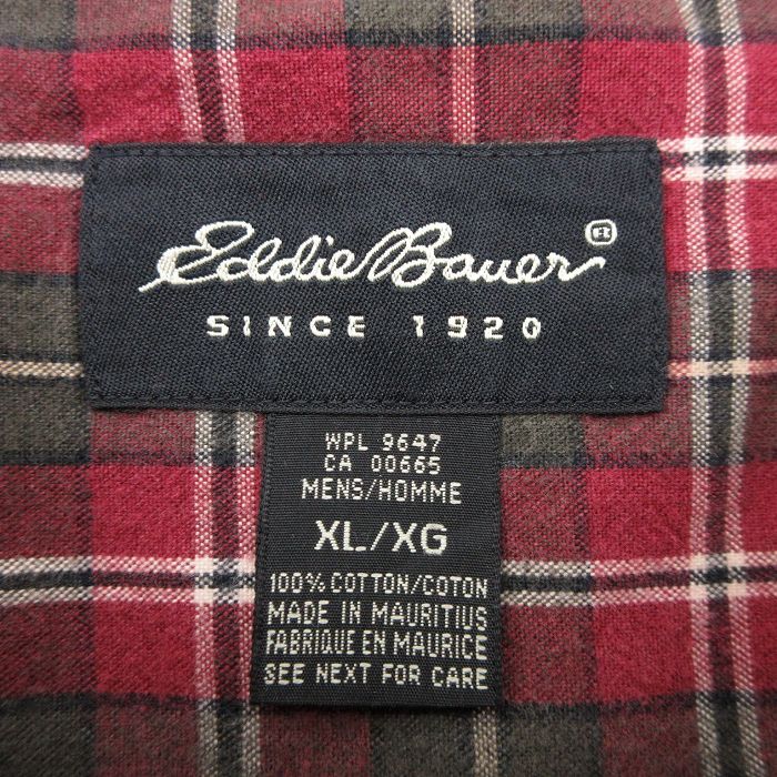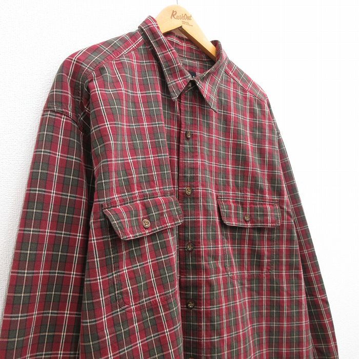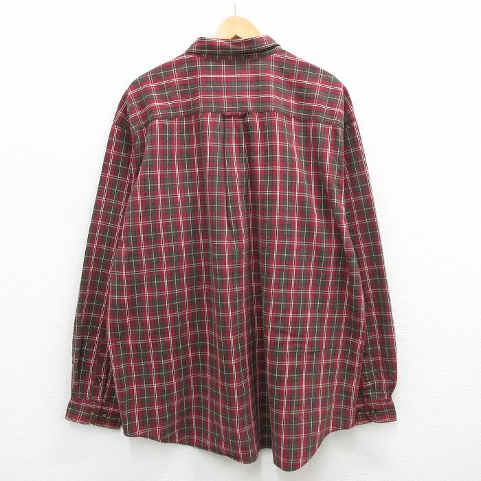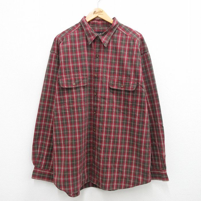 【商品名】 XL★古着 エディーバウアー 長袖 ブランド シャツ メンズ 00年代 00s 大きいサイズ ロング丈 コットン エンジ他 チェック