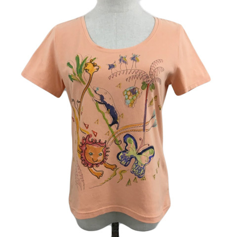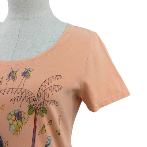 ヒロココシノ TRUNK カットソー Tシャツ プルオーバー Uネック プリント 刺繍 マルチカラー 半袖 40 オレンジ 青 ブルー レディース