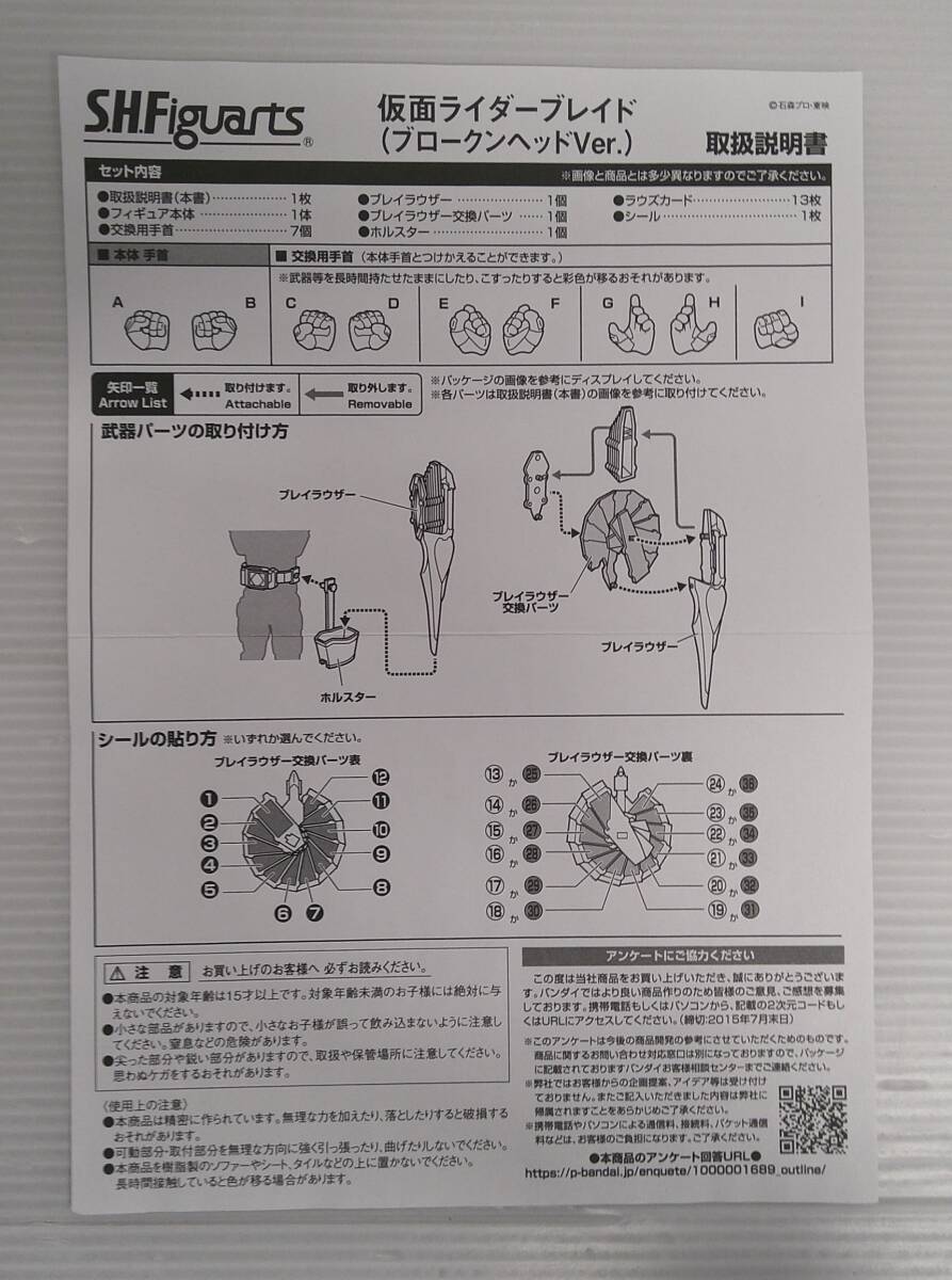 ★Product name★[opened]S.H.Figuarts Kamen Rider Blade (Broken Head Ver.) “Kamen Rider Blade” Tamashii Web Store Exclusive ★商品名★【開封品】S.H.Figuarts 仮面ライダーブレイド(ブロークンヘッドVer.) 「仮面ライダー剣(ブレイド)」 魂ウェブ商店限定【箱傷み等有】 ★商品状態★ :AB 使用感小 多少の使用感はありますが、比較的良好な状態の中古品 -------------------- "その他特記事項:こちらの商品、箱に傷みと擦れとざらつきがございます。 ご了承の上ご購入ください。 商品解説■こちらは魂ウェブ商店限定商品です。 S.H.Figuarts初! 頭部破損状態の仮面ライダーが商品化! 破損状態の頭部を新規造形にて再現。 さらに、戦闘で傷ついた様子をイメージし、通常版と異なる彩度を下げたカラーリングが施されている。 【セット内容】 フィギュア本体、交換用右手首4種、交換用左手首3種、ホルスター カード部分展開パーツ、ブレイラウザー一式、ラウズカード一式(計13枚)、取扱説明書 【商品詳細】 仕様:塗装済み可動フィギュア サイズ:全高約150mm 材質:ABS、PVC (C)石森プロ・東映 " ※上記商品状態は弊社基準によるものです。状態を細かに気にされます方はご入札をご遠慮ください。 未開封品:箱や袋の封が切られていない状態、箱に傷のある場合もあります。 開封品:中身を検品し、状態などを確認した商品、ランクによっては傷等があります。 他にもPCゲーム、フィギュア、ホビーグッズなどなど多数出品中! ぜひご覧ください♪ ●査定無料●高額買取● アダルトDVD、成年コミック、PCゲーム、フィギュア、ホビーグッズetc… 郵送にて随時お買取中!是非一度ご相談下さいませ! ■リサイクルのプリマベーラ■ https://www.otokonodvd.com/primavera/ |