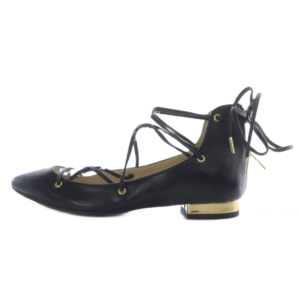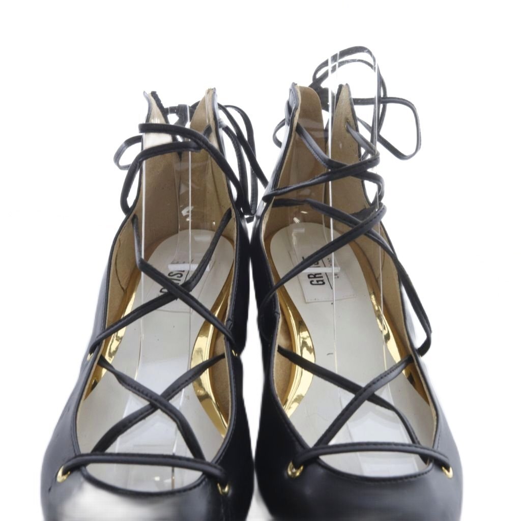ルタロン Le Talon GRISE ポインテッドトゥ レースアップ フラット パンプス 35.5 黒 ブラック /SR14 レディース