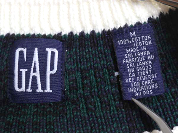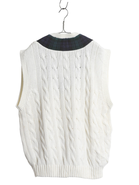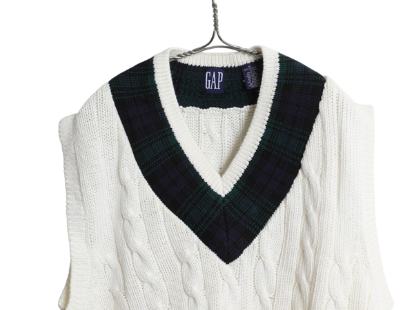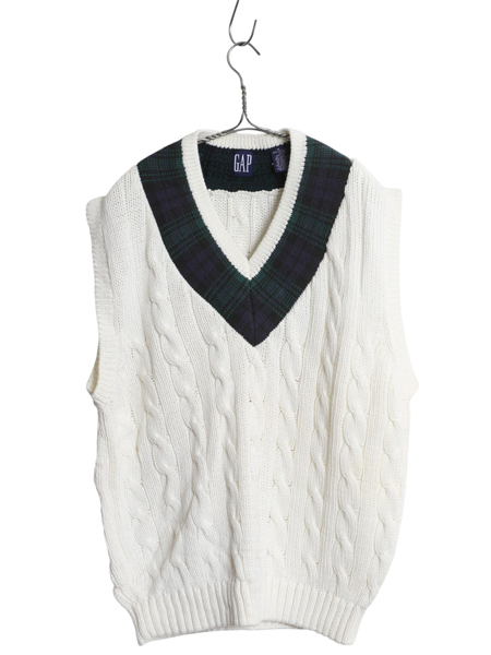 | 商品名 | 90s オールド ギャップ チルデン ケーブル ニット ベスト メンズ レディース M / 古着 紺タグ コットン Vネック ブラックウォッチ 重ね着 |
