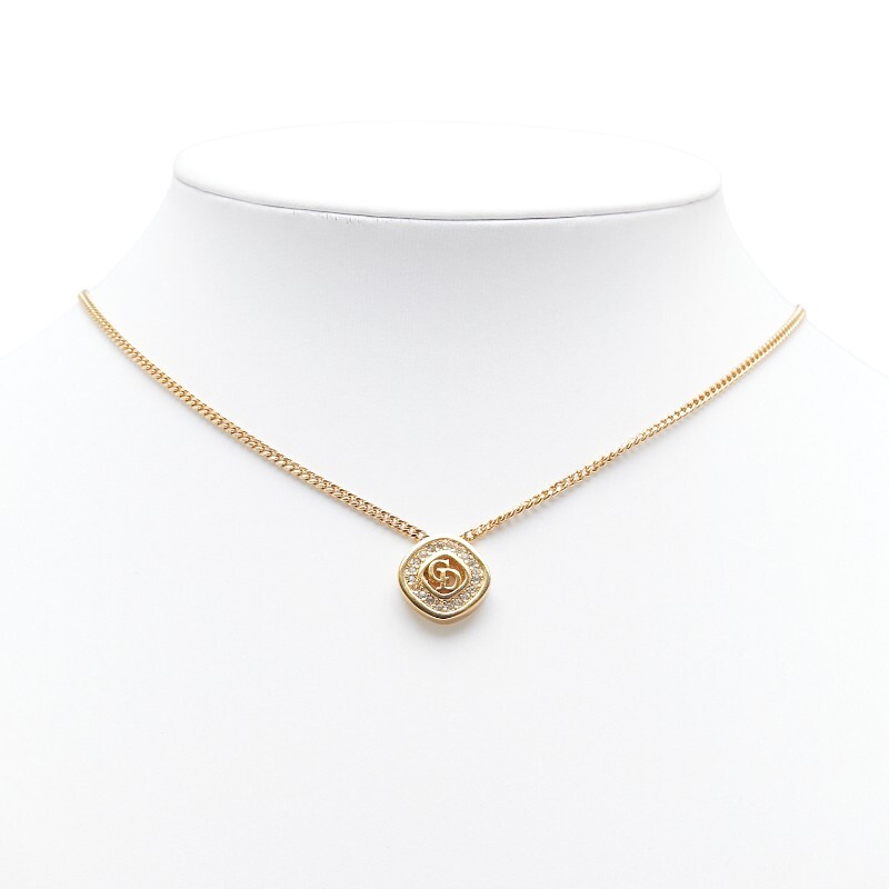 ディオール CDロゴ ラインストーン ネックレス ゴールド メッキ レディース Dior 【中古】