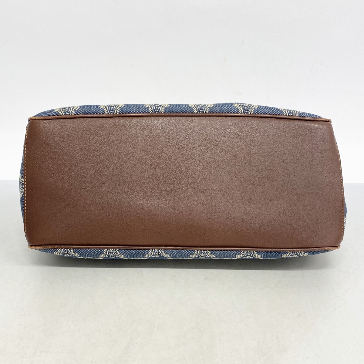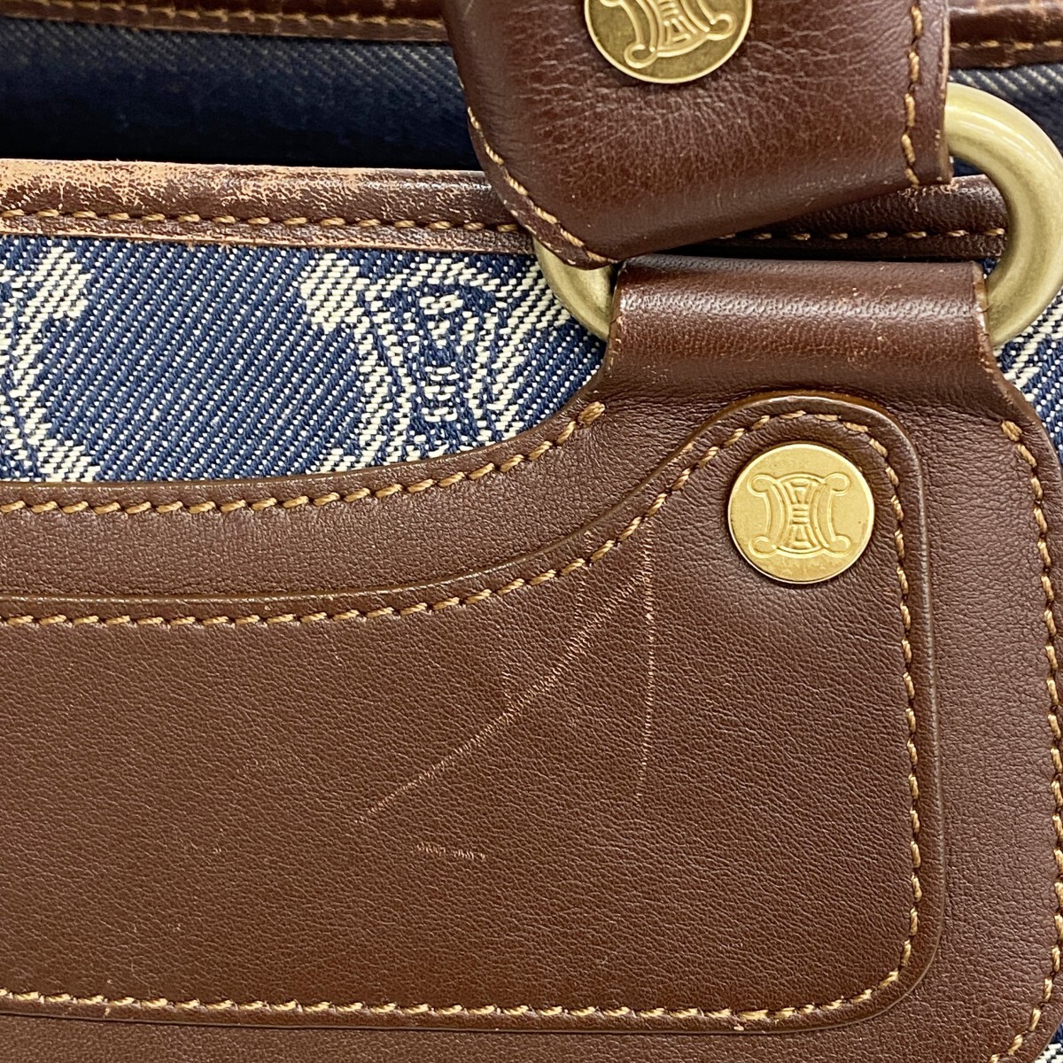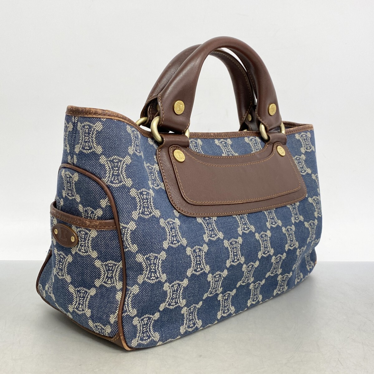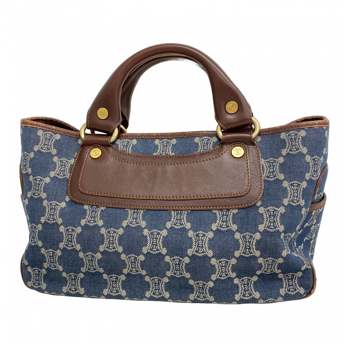 【5he5045-h】セリーヌ ハンドバッグ マカダム ブギー デニム ブルー ブラウン ゴールド金具【中古】レディース
