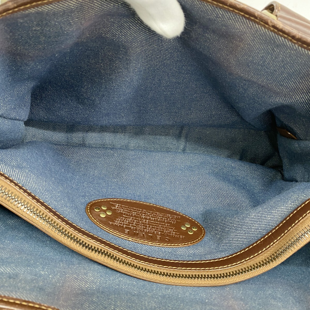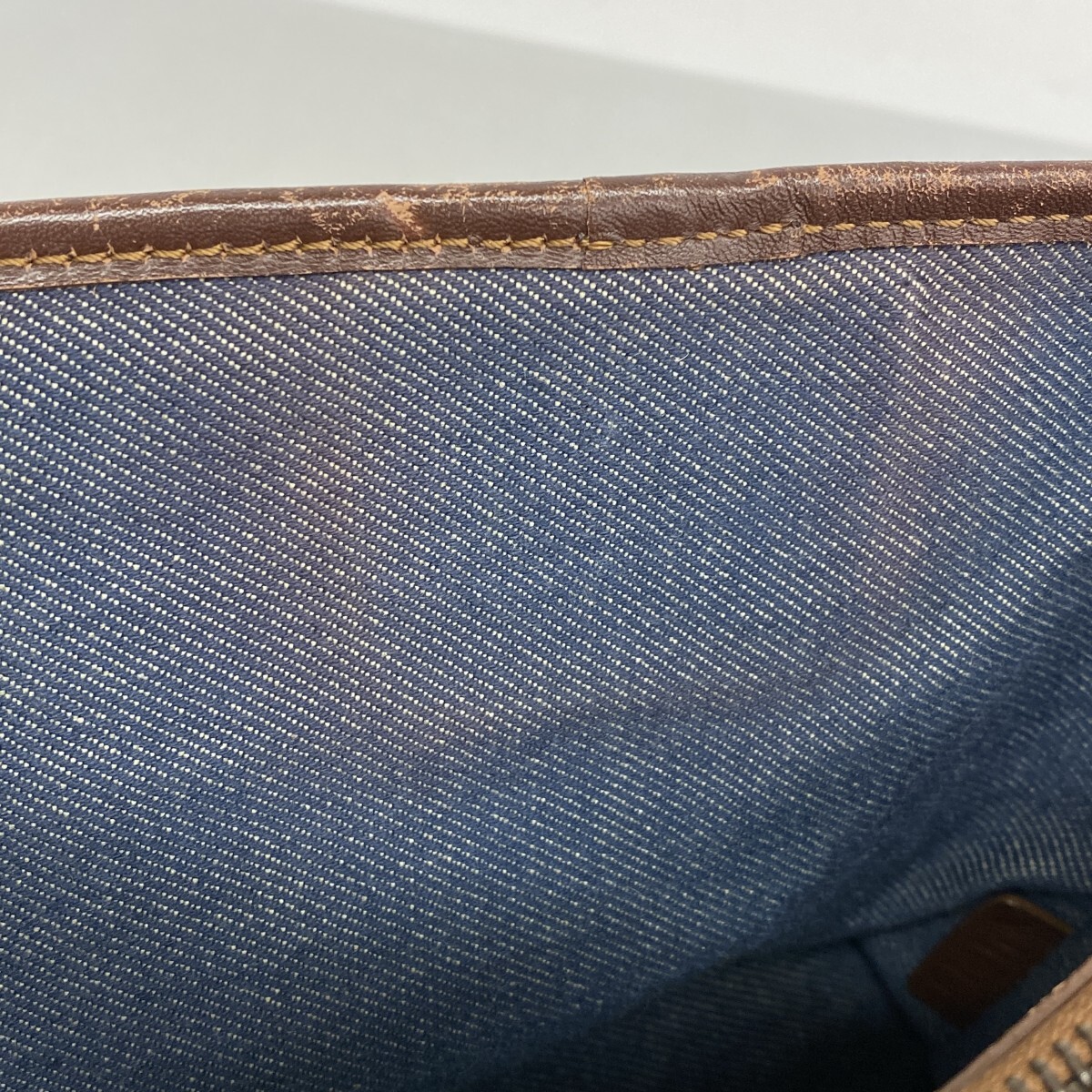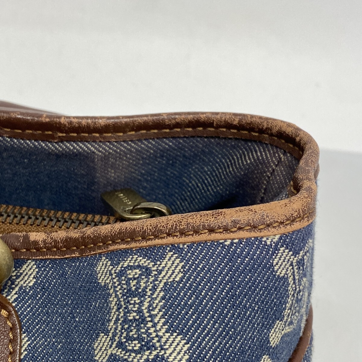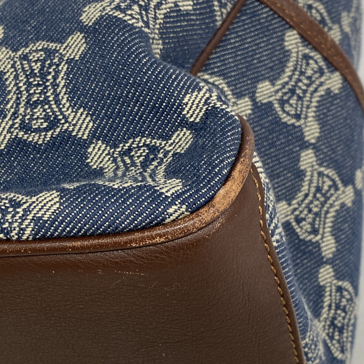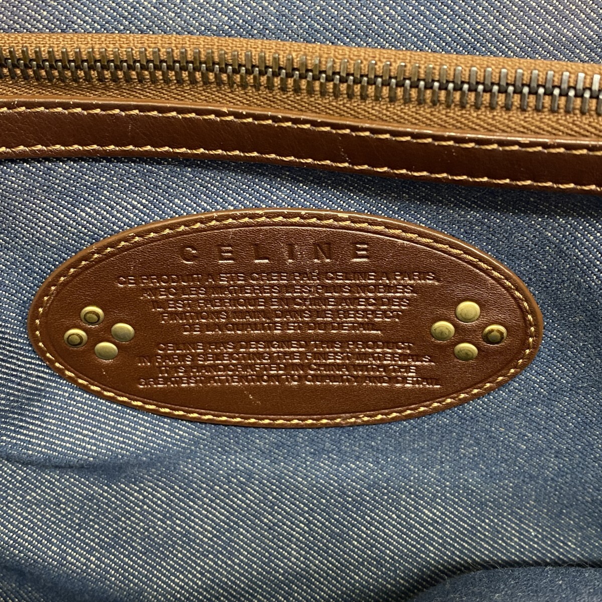 【5he5045-h】セリーヌ ハンドバッグ マカダム ブギー デニム ブルー ブラウン ゴールド金具【中古】レディース