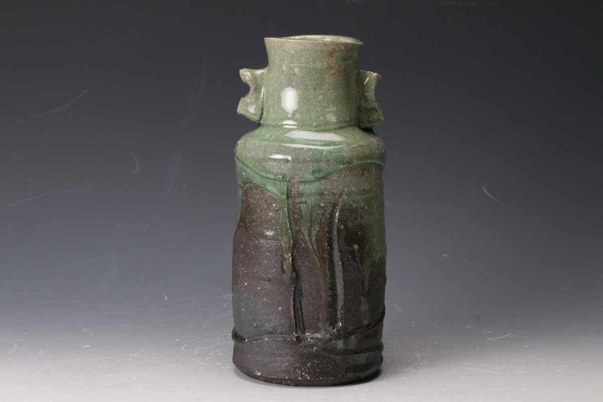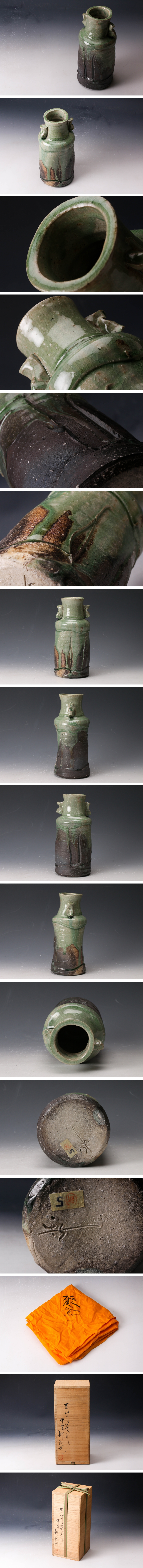 【佳香】新歓嗣 伊賀耳付花入 共箱 共布 本物保証