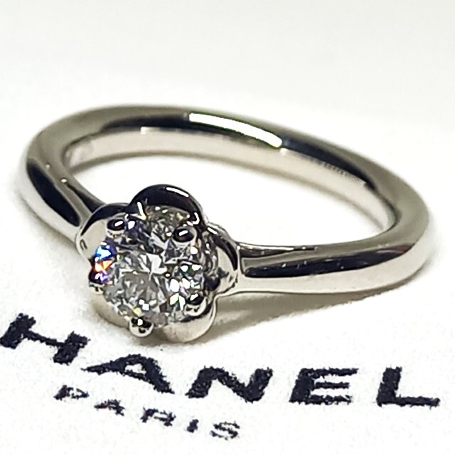 美品 CHANEL シャネル ダイヤ 0.41ct カメリアコレクション リング pt950 1P 花 ブライダル 指輪 証明書