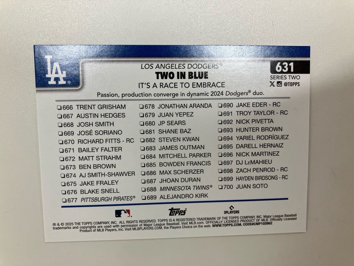 Topps MLB 2025 series2 Two In Blue Freddie Freeman Mookie Betts ベースカード NO.631 フレディ・フリーマン ムーキー・ベッツです、