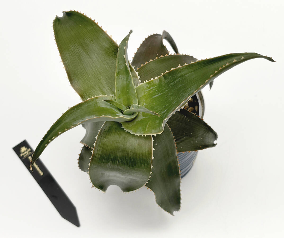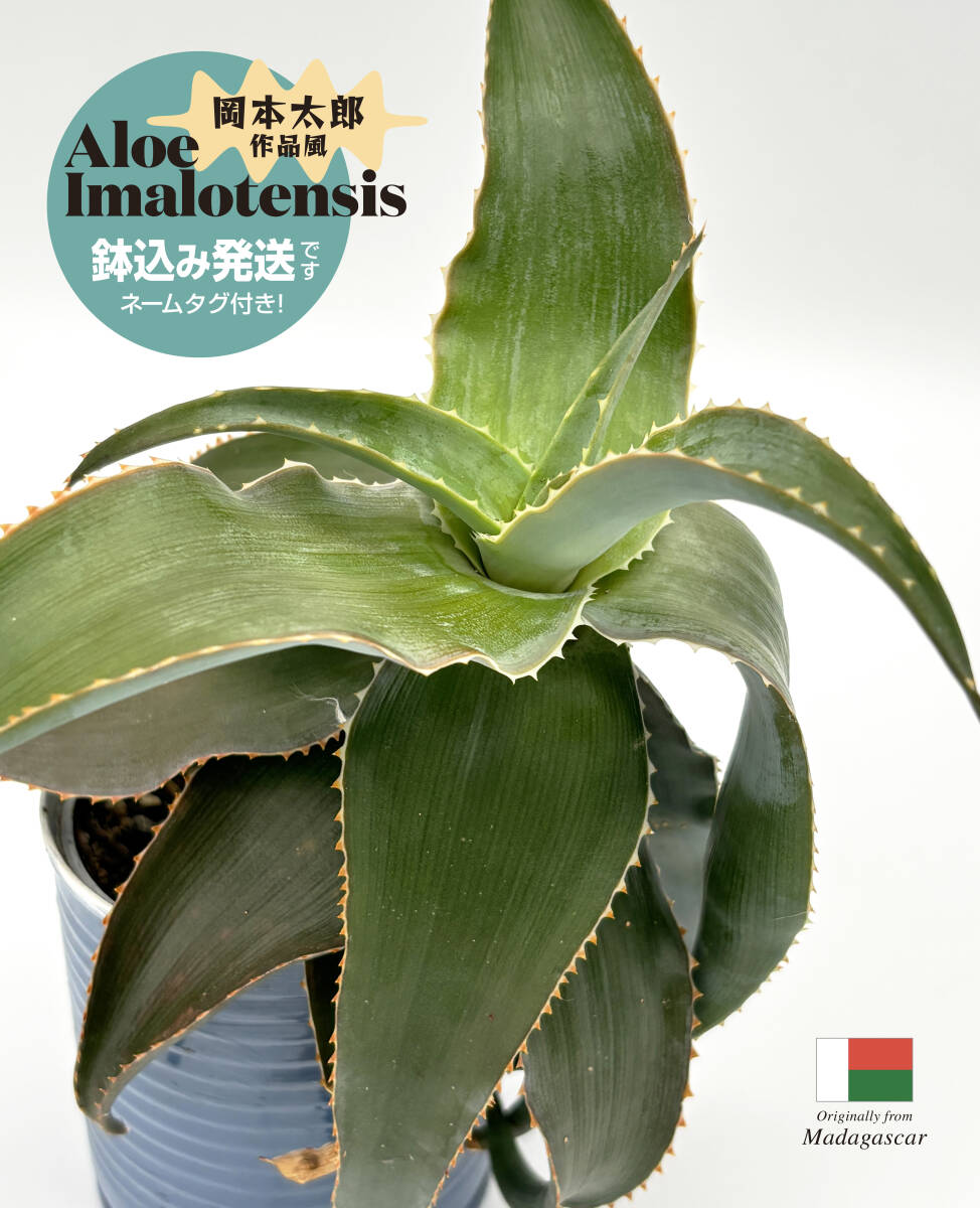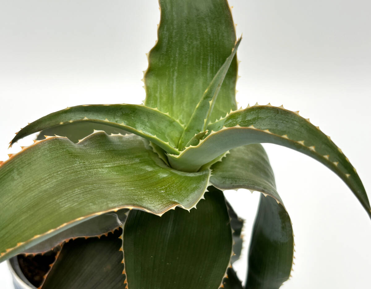 マダガスカル原産。細かい筋の入った幅広の葉にマイルドな小さなトゲがとてもエレガントな希少なアロエです。