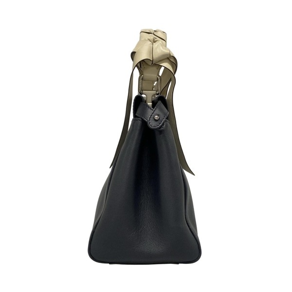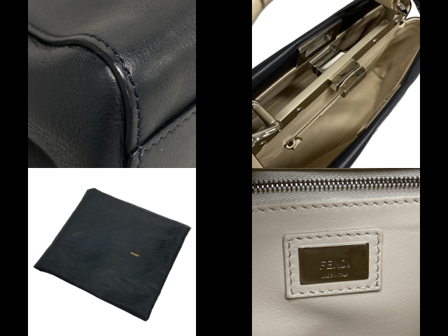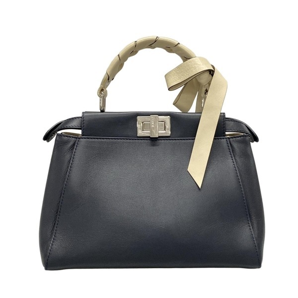 フェンディ FENDI ハンドバッグ 8BN244 ピーカブーアイコニックスモール レザー 黒×ベージュ リボン バッグ