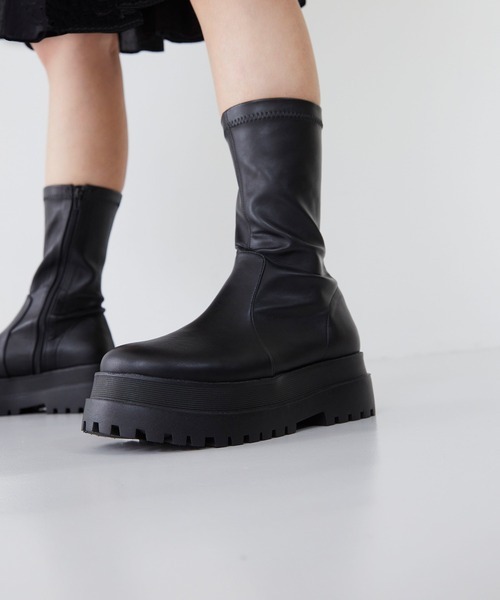 参考商品名:ストレッチ 厚底 ミドルブーツ