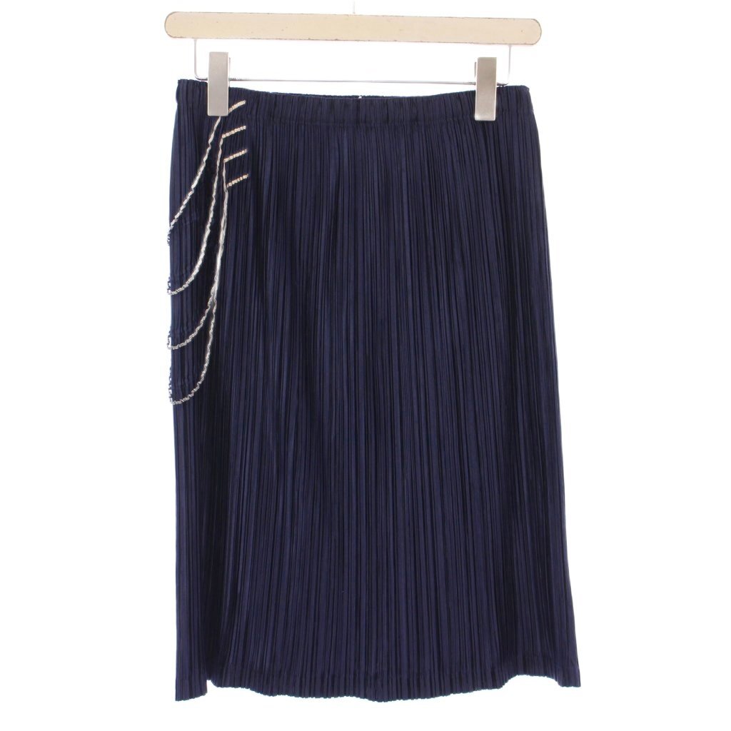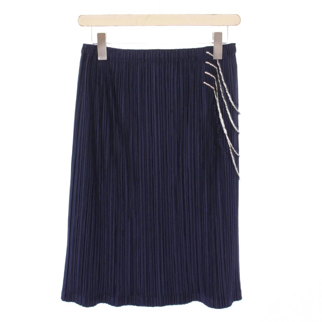 プリーツプリーズ PLEATS PLEASE イッセイミヤケ フレアスカート イージー ひざ丈 ウエストゴム ストレッチ 4 紺 ネイビー