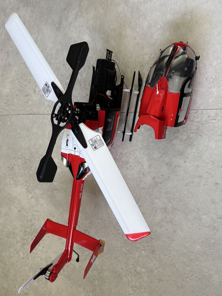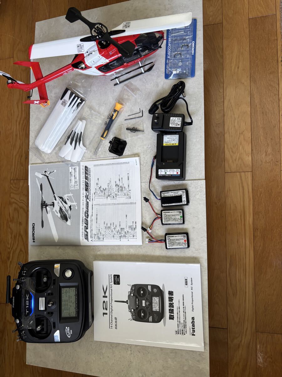 フタバ送信機12Kは今年3月頃に、HIROBO SRBと塗装済みスケールボディーは7月に模型店から購入しました。基本的な設定のみで屋外で5・6回フライトしました。他のスケールヘリ購入の為に出品してます。出品にあたり室内で作動確認しました。(写真に撮っている通りホバリングしました。)バッテリーを充電すればすぐにフライト出来ますが、自分に合った設定をしてフライトして下さい。バッテリー3個共ボディーに積めますが、1個加工しています。(ボディーの窓に当たる為)多少の汚れや傷等有ります。少しでも気になさる方完璧な商品をお求めの方の入札はご遠慮ください。クレーム無しでお願い致します。 ※注意 (機体用バッテリー・プロポ用バッテリーが有る為に航空便使用の地域には発送出来ませんので、申し訳ございませんが入札はお断り致します。宜しくお願いします。)