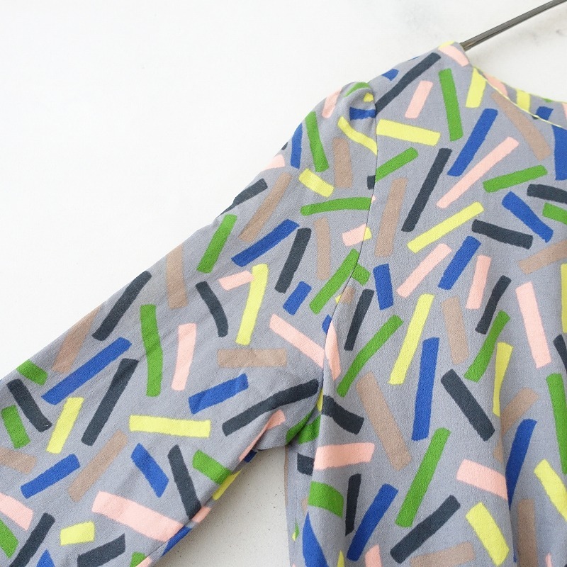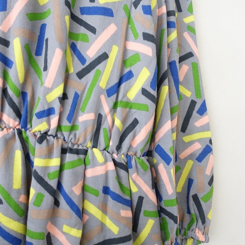 mina perhonenのlight stick プリントワンピースです。カラーはグレーベースに、色とりどりのlight stickテキスタイルプリントの施されたジョーゼットのようなコットン素材で仕立てられています。背上部に1つボタン付きのプルオーバータイプで、袖口&ウエストはゴム仕様です。定価(メーカー希望小売価格) 59,400円の商品です。 |
