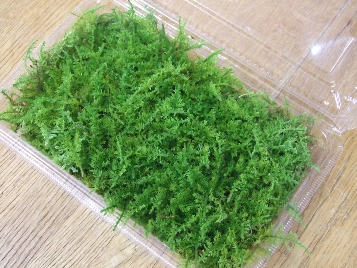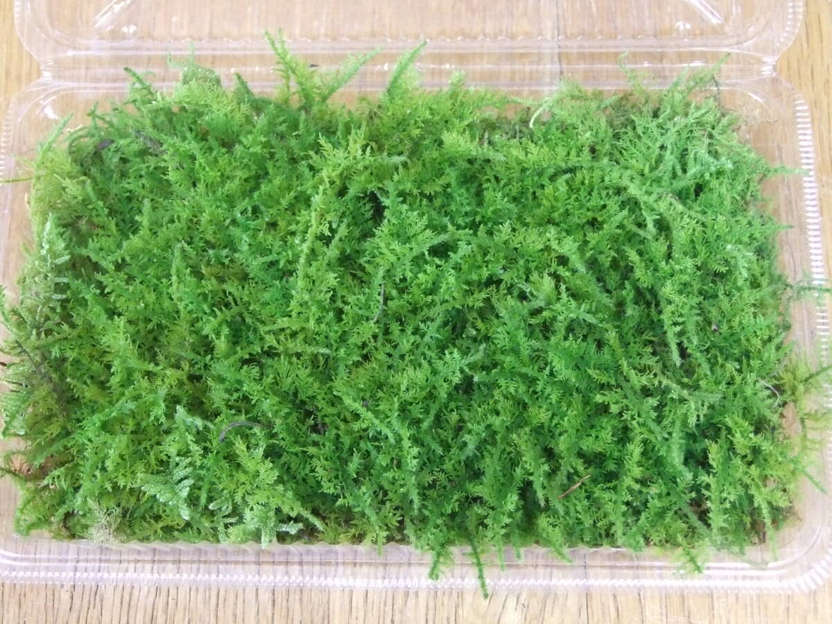 こちらは、山より採取した天然のシノブゴケをパックLサイズ(22cm×14cm×4.5cm) に詰めました。