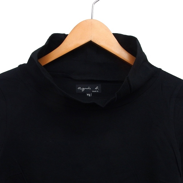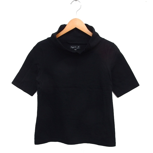 アニエスベー agnes b. オフタートル カットソー コットン 綿 無地 五分袖 T2 黒 ブラック /NT21 レディース
