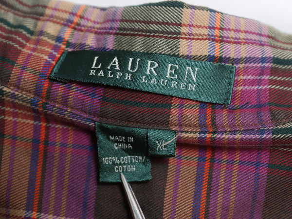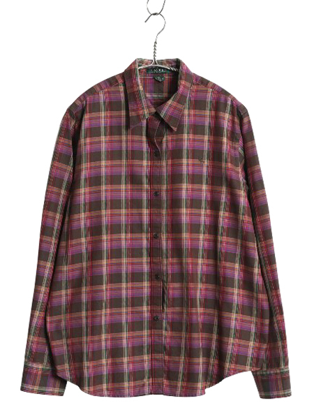 | 商品名 | 00s ローレン ラルフローレン チェック 長袖 シャツ レディース XL / オールド コットン マルチカラー ワンポイント 大きいサイズ きれいめ |