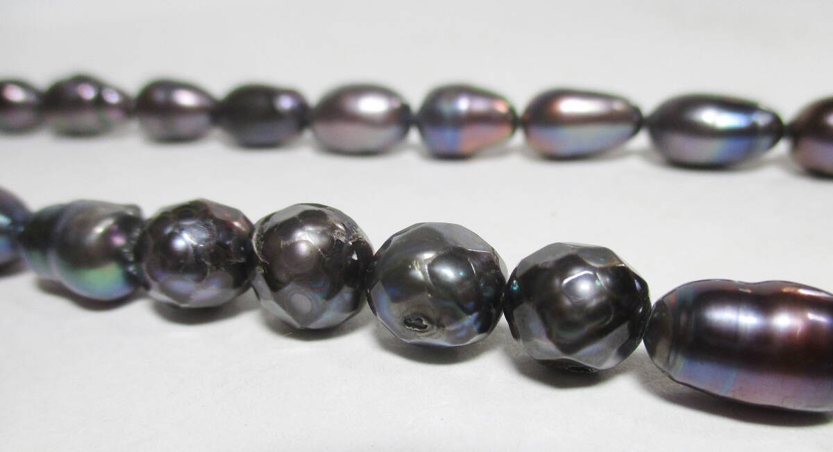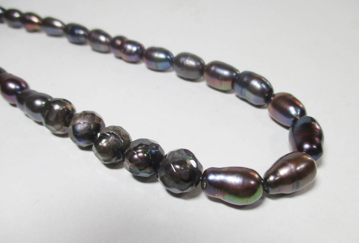淡水真珠 ブラックバロック ミラーボールカット パール ネックレス 8㎜ 36珠 44cm 淡水真珠のブラックバロック ミラーボールカットパール ネックレスです 片側にミラーボールカットされたブラックパールが9珠入っています 新しい糸に糸替え済 サイズ約 8㎜ 36珠 44㎝ ゆうパケット230円で発送します。