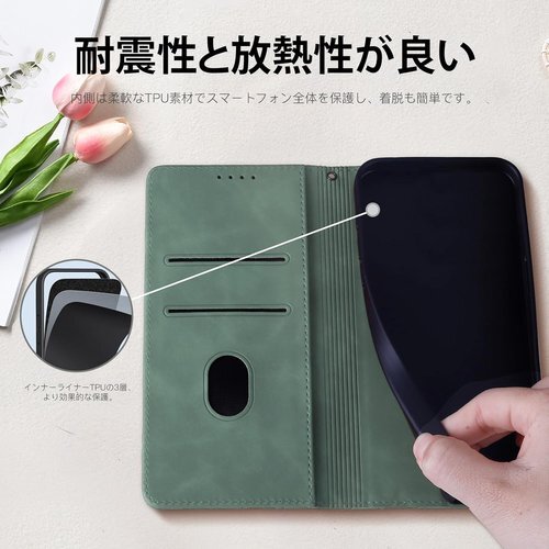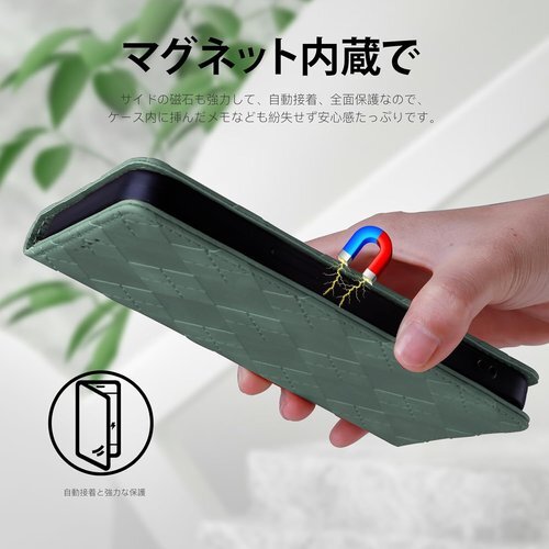 Succtopy iphone 12 ケース 手帳型 カード収納 マグネット内臓式 スタンド機能付き グリーン 1341