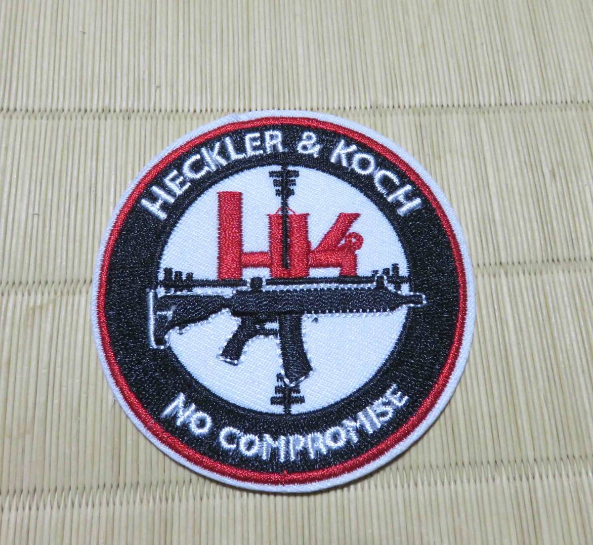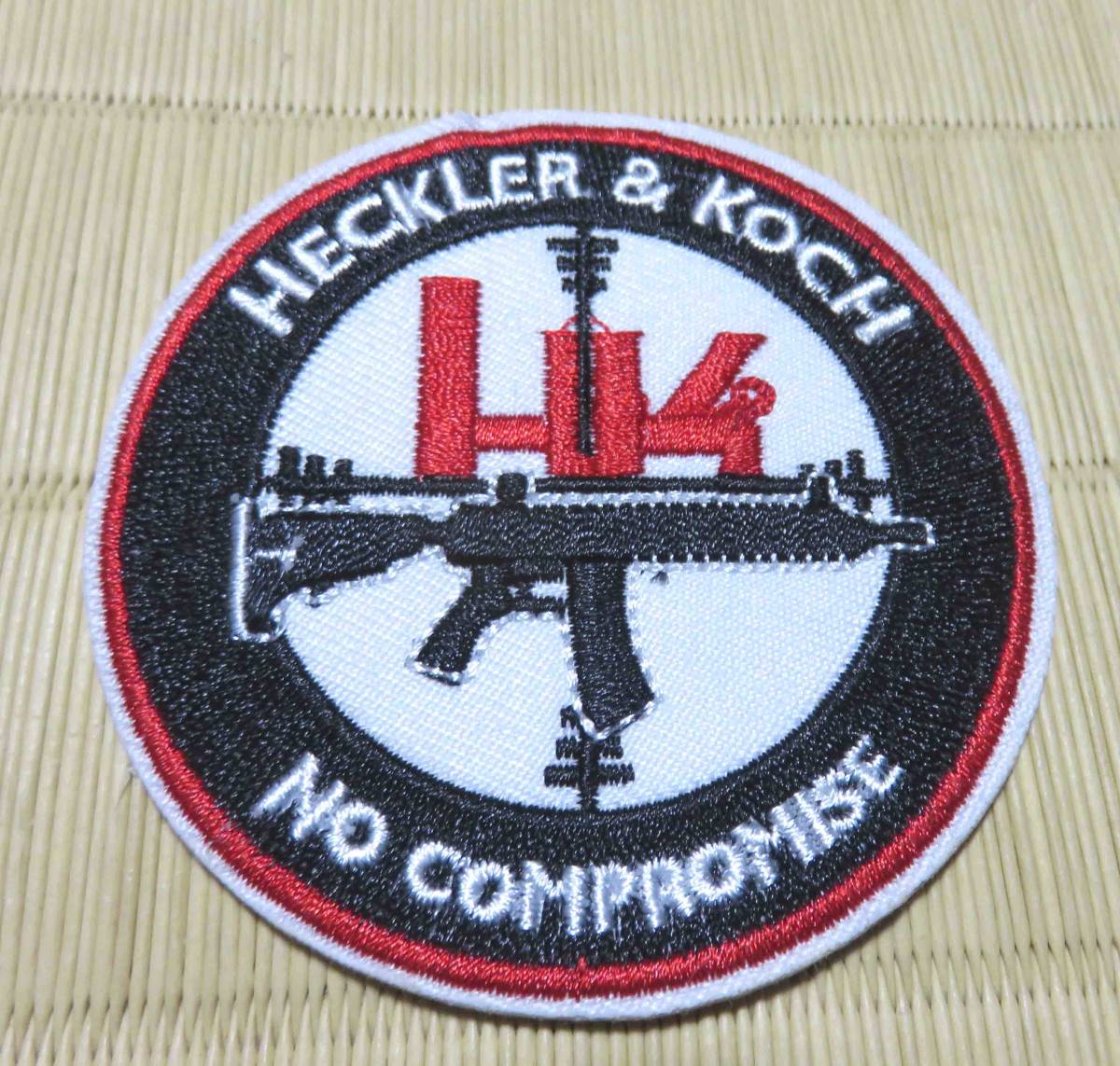 円型◇白黒赤◆新品未使用 ヘッケラー&コッホ Heckler & Koch  HK ドイツ   自動小銃 標的 NO COMPROMISE 妥協なし 刺繍ワッペン(パッチ)◆◇サバゲー・コスプレ・ミリタリー◎