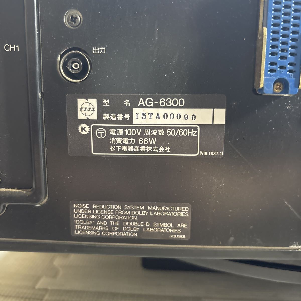 MYM9-193 激安 NATIONAL AG-6300 VIDEO CASSETTE RECORDER 通電NG 中古現状品 ※3回再出品で処分
