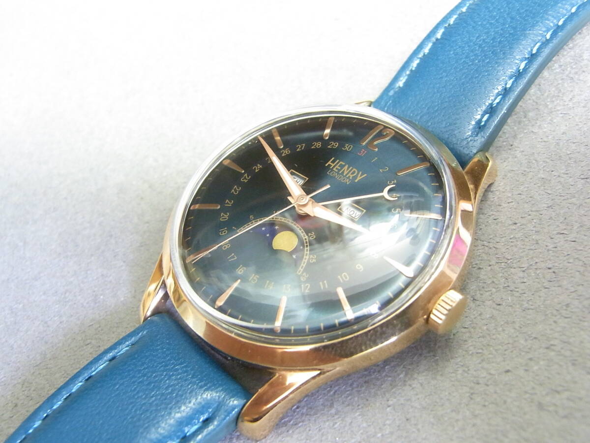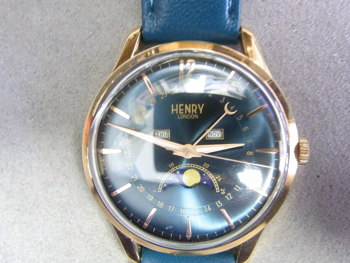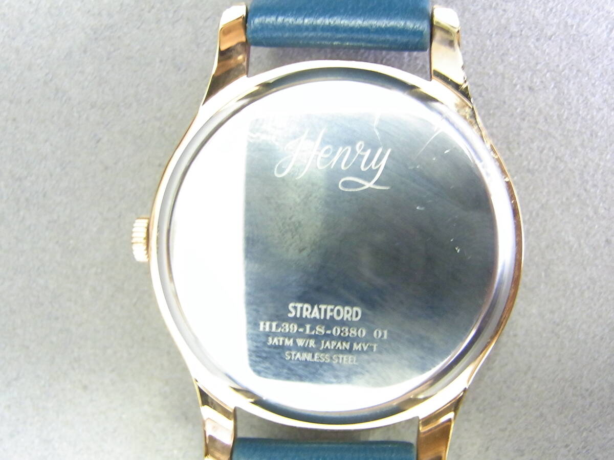 【中古品:状態「悪い」】ヘンリー/HENRY腕時計 クオーツ アナログ表示 文字盤カラー:グリーン系 ※ガラスにキズあり。