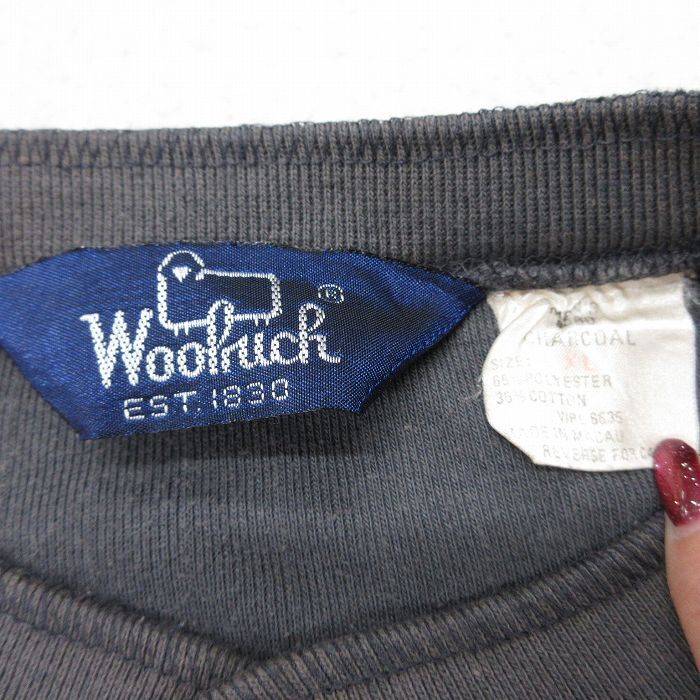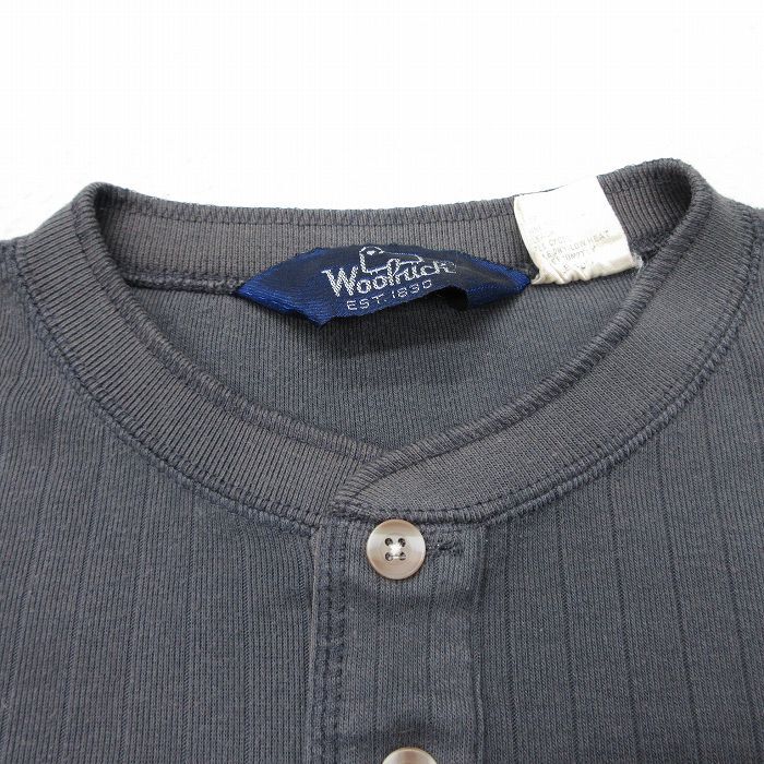 【商品名】 L★古着 ウールリッチ 長袖 ビンテージ Tシャツ メンズ 90年代 90s 無地 ヘンリーネック 濃グレー