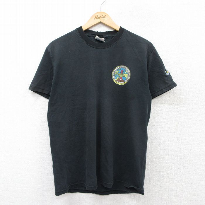 【商品名】 M★古着 ヘインズ 半袖 ビンテージ Tシャツ メンズ 00年代 00s ミリタリー DET ROTA ボロ コットン クルーネック 黒