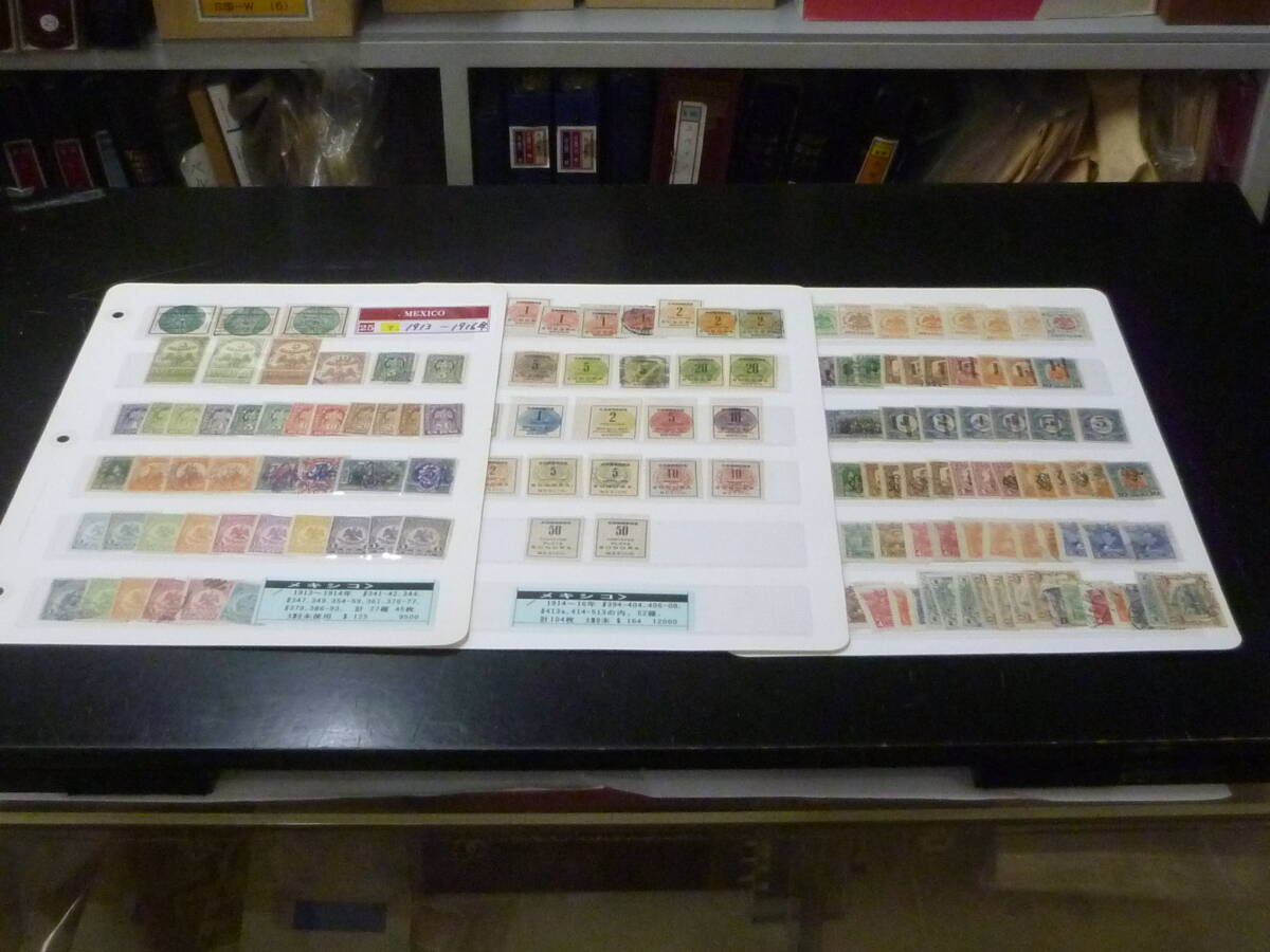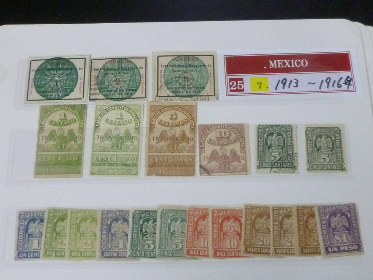 25 M №7 メキシコ切手 1913-1916年 SC#341-513の内 計149枚 3リーフ 未使用OH・使用済 【SC評価 $289】