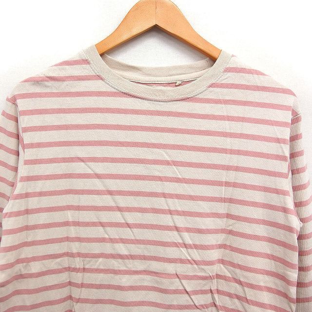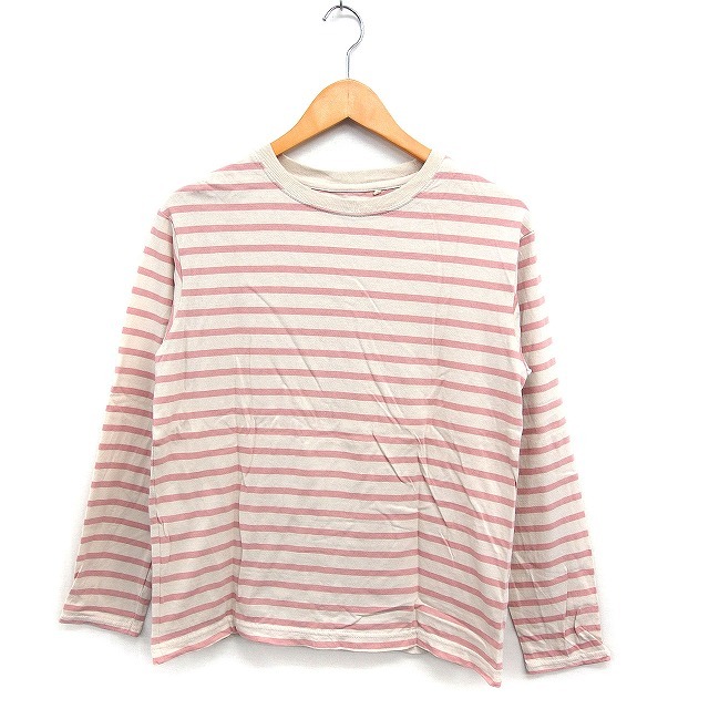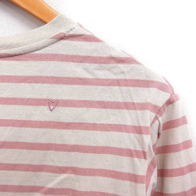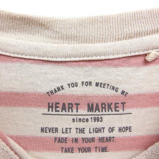 ハートマーケット HEART MARKET ボーダー Tシャツ 長袖 丸首 コットン 綿 F ベージュ ピンク /FT24 レディース