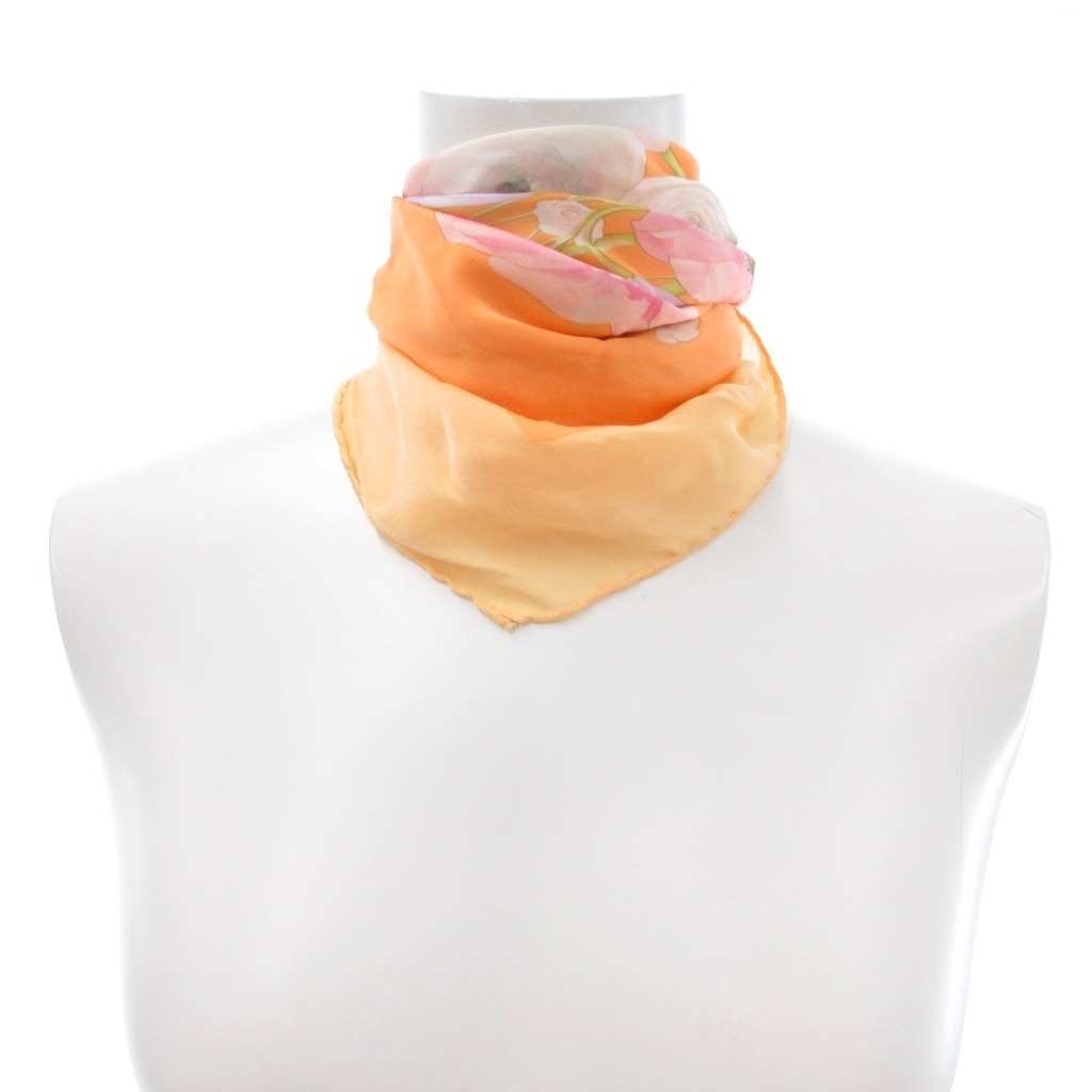 サルヴァトーレフェラガモ Salvatore Ferragamo スカーフ 花がら 絹 シルク オレンジ /JS ■GY19 レディース