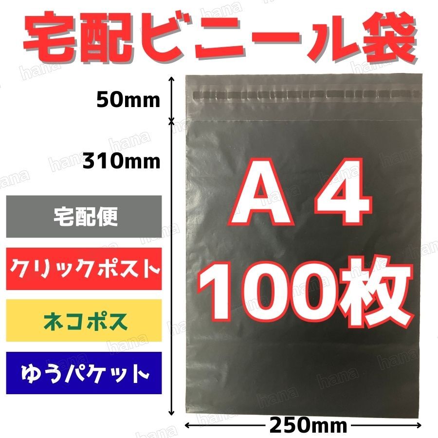 A4 100枚 宅配ビニール袋 宅配袋 ポリ袋 強力テープ付 ネコポス ゆうパケット クリックポスト ラッピング 防水 梱包 包装 資材 ブラック
