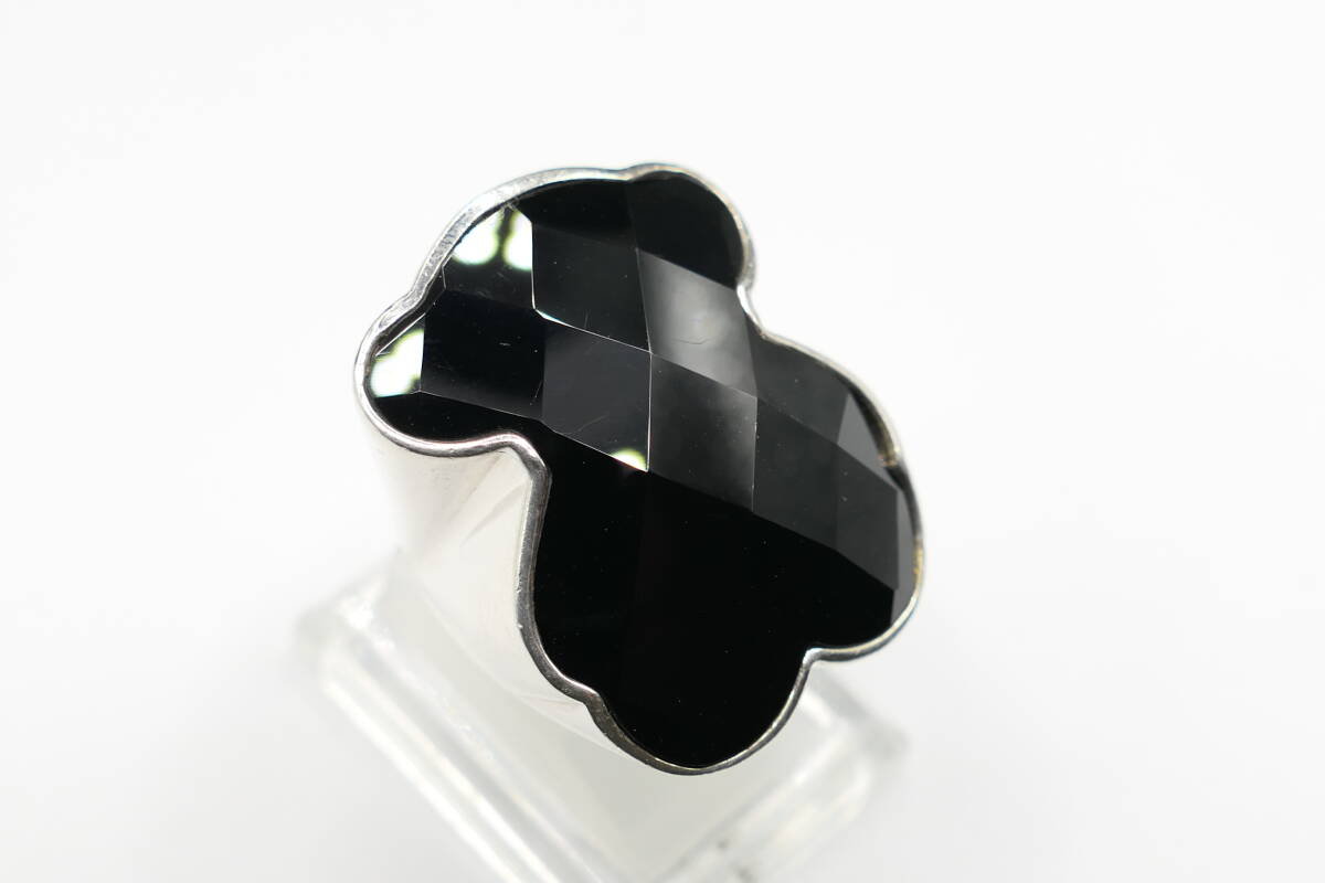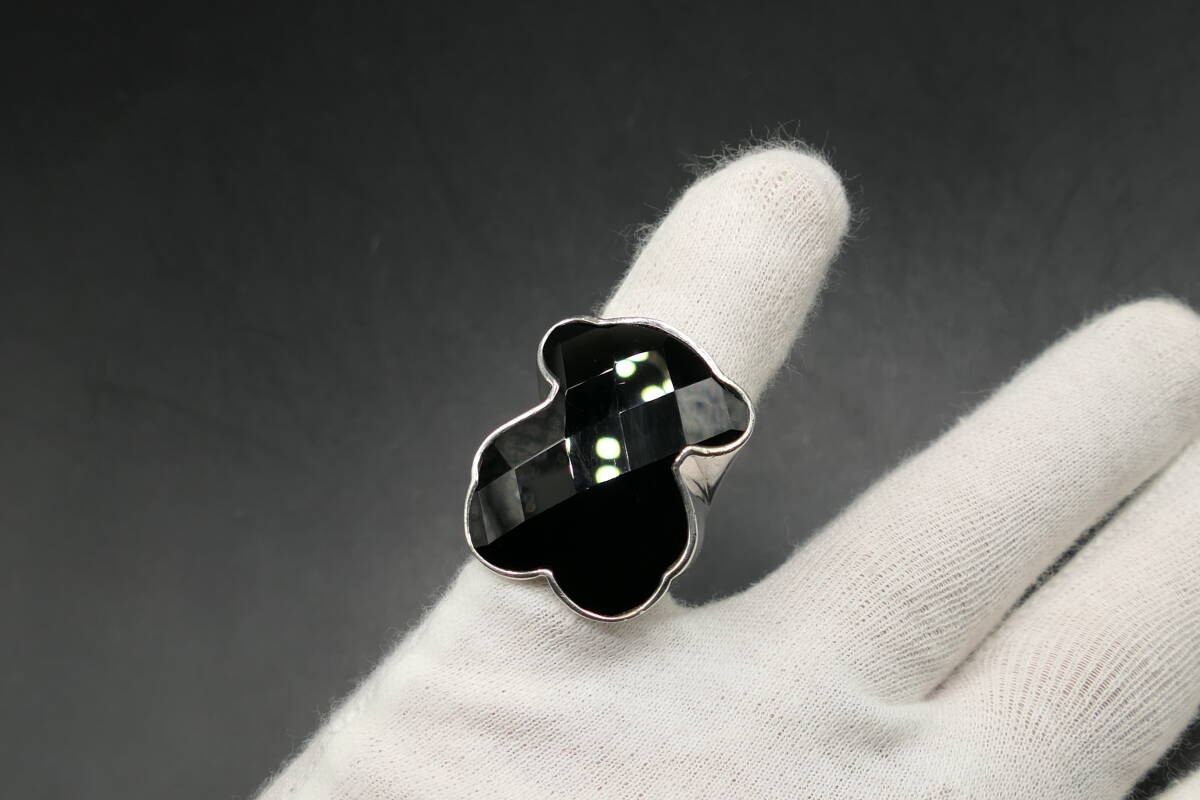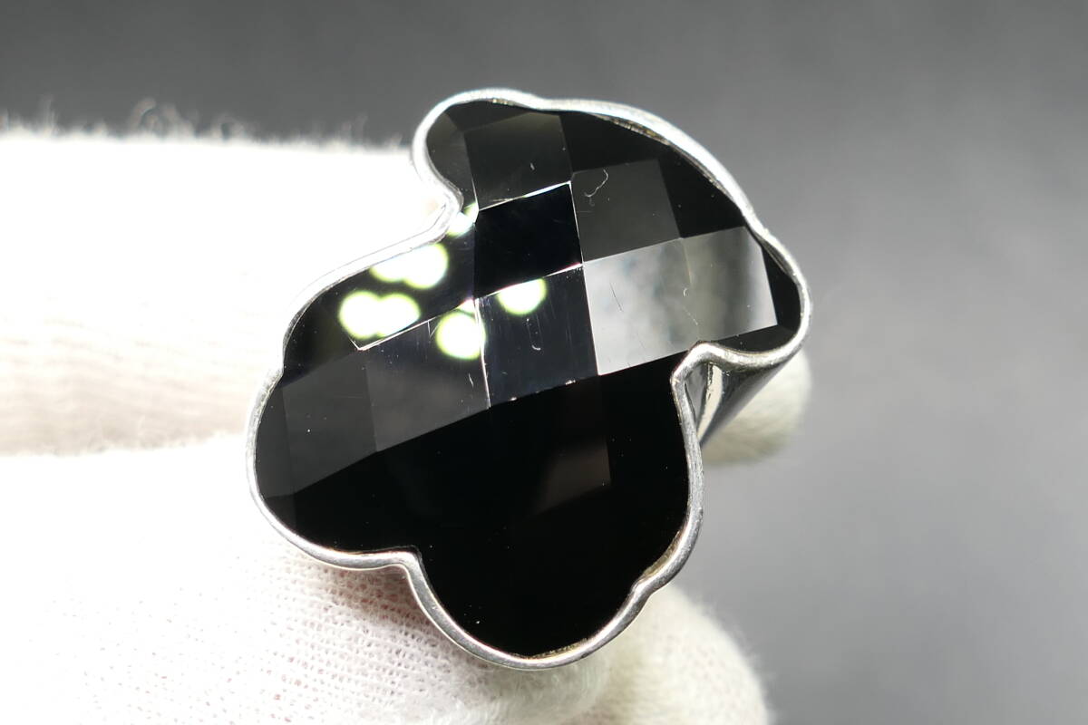 表面を多面体にカットしたオニキスと、シルバーとのコンビネーションが美しく個性的。