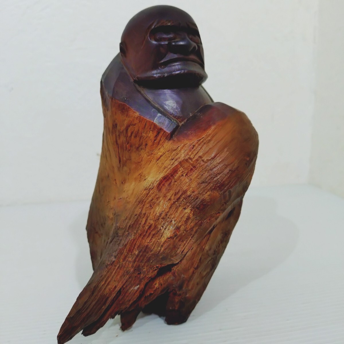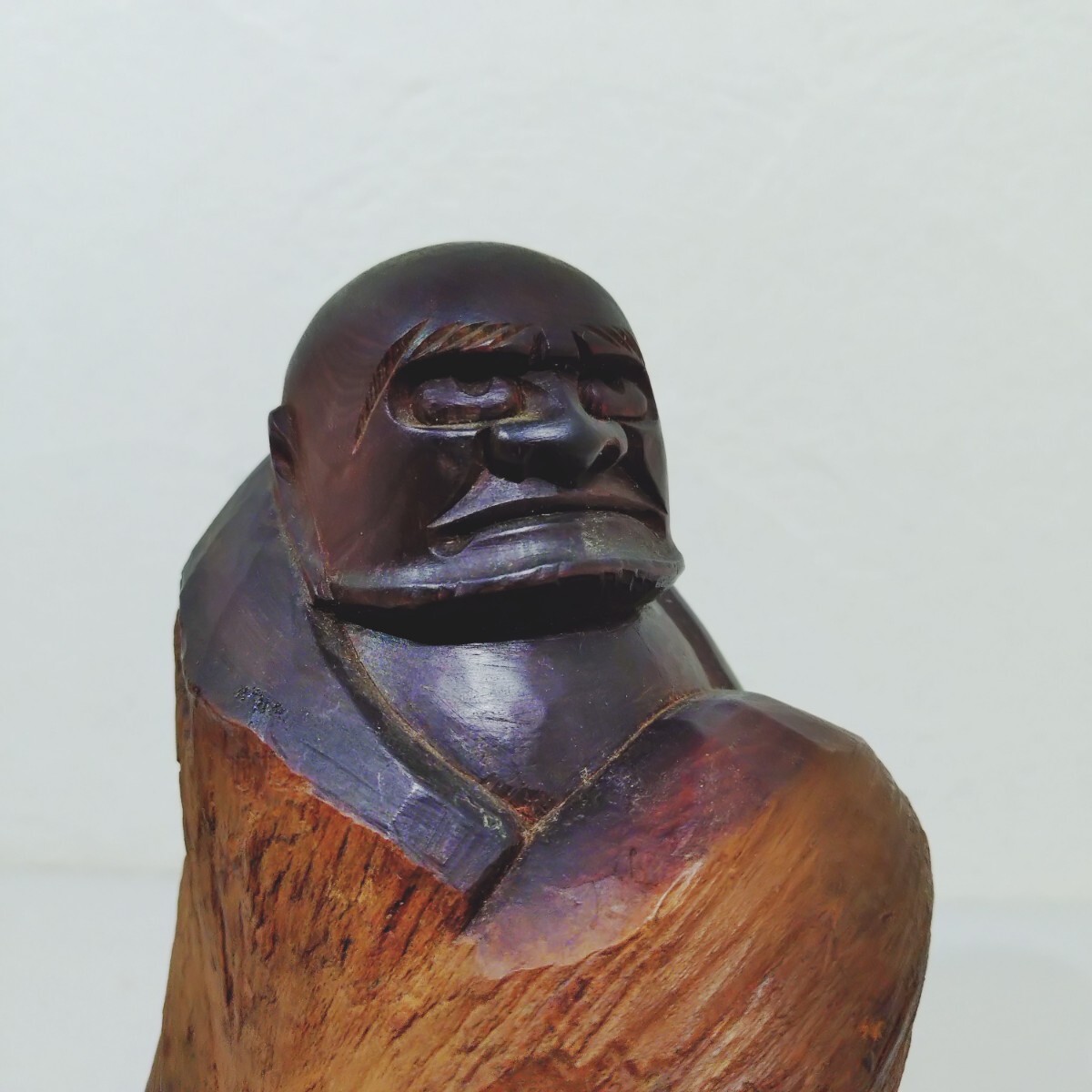 母体の天然木がいい形で迫力のある達磨の衣装に合っています。