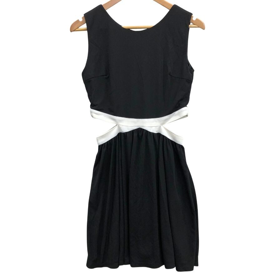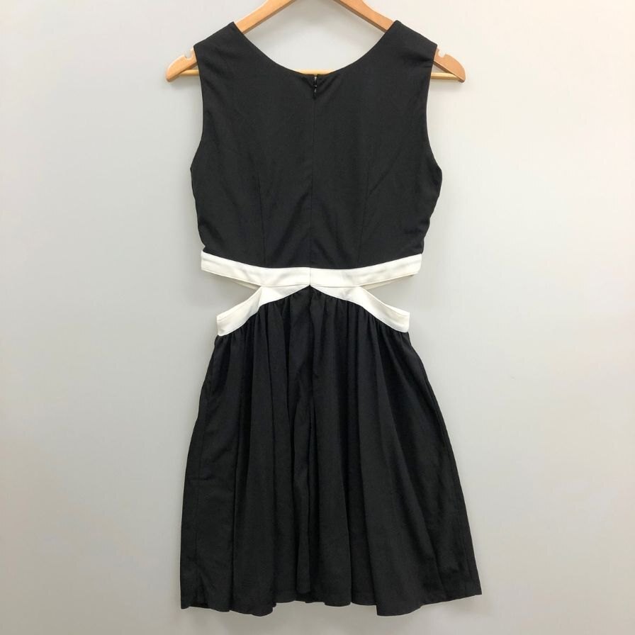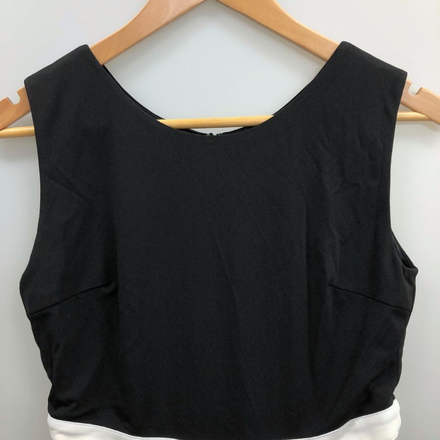 新品同様◆ワンピース レディ ワンピース ウエストカット ノースリーブ バイカラー チュニック ブラック ホワイト 【AFB23】