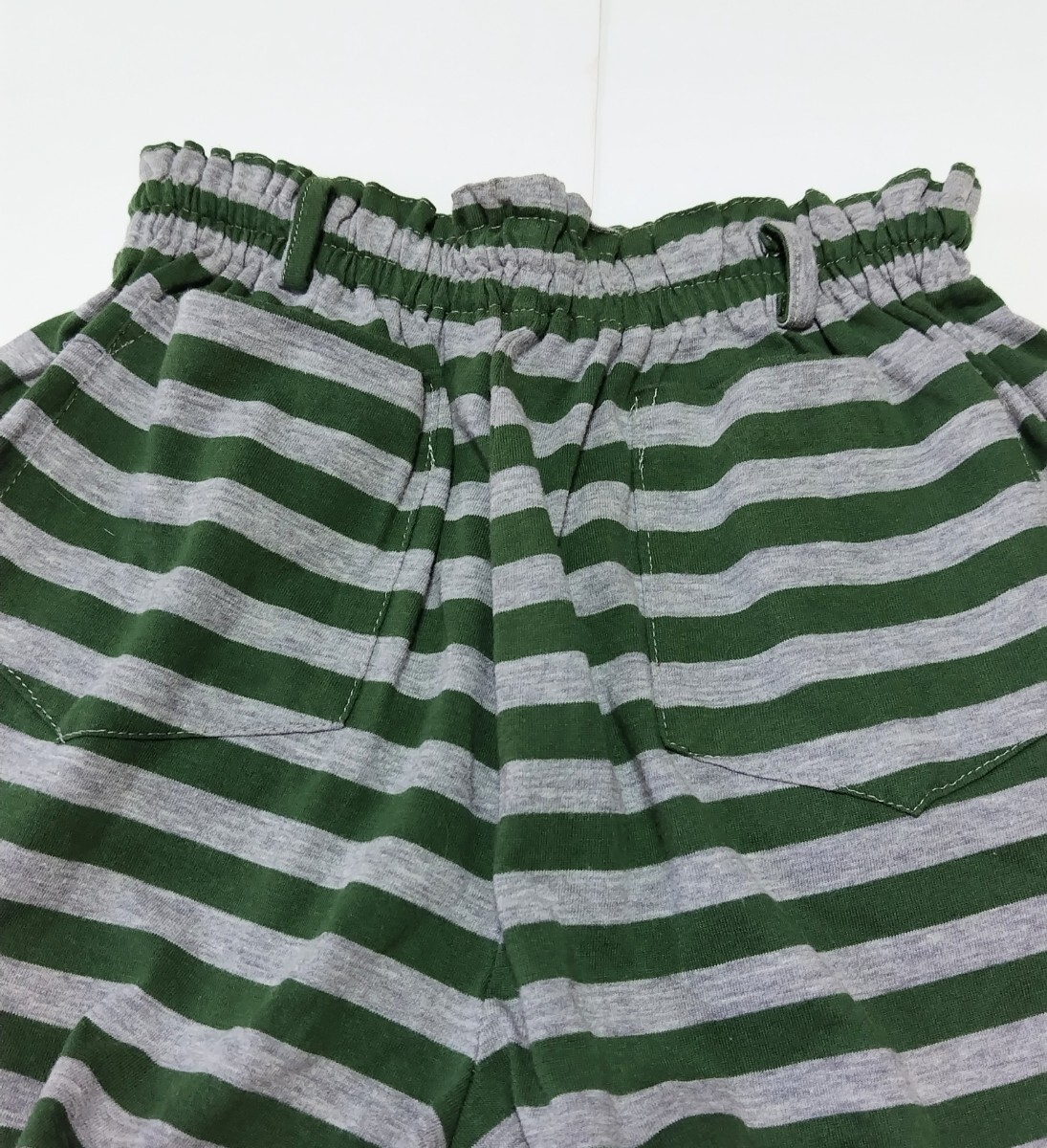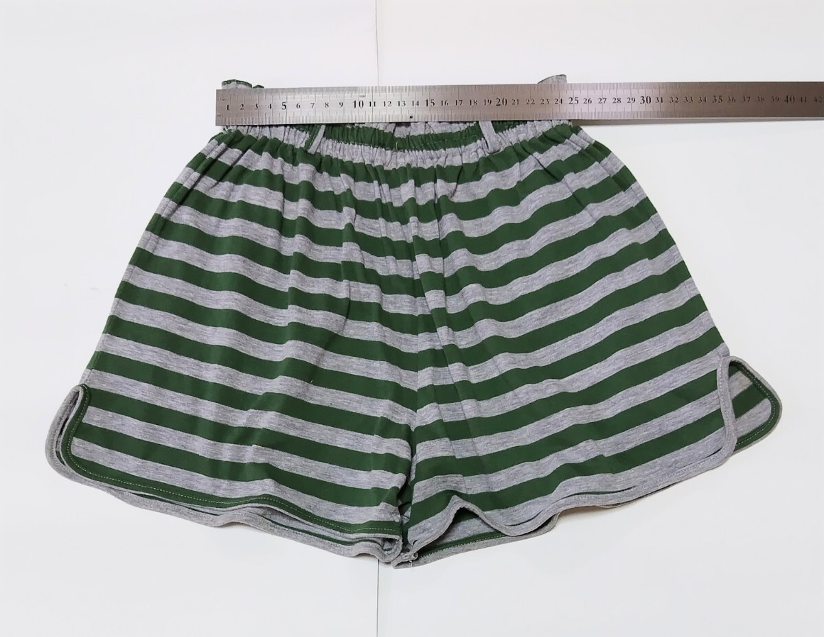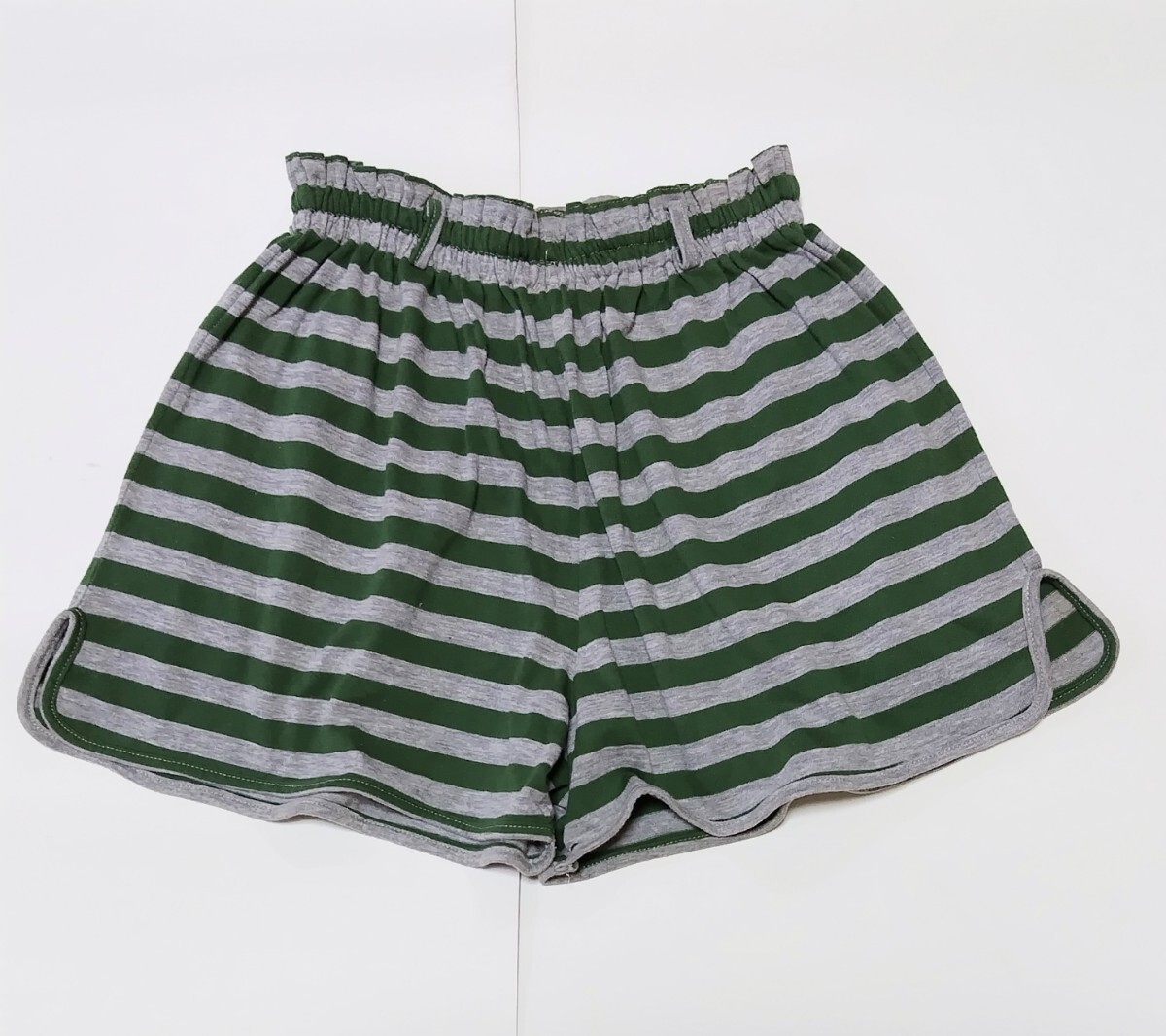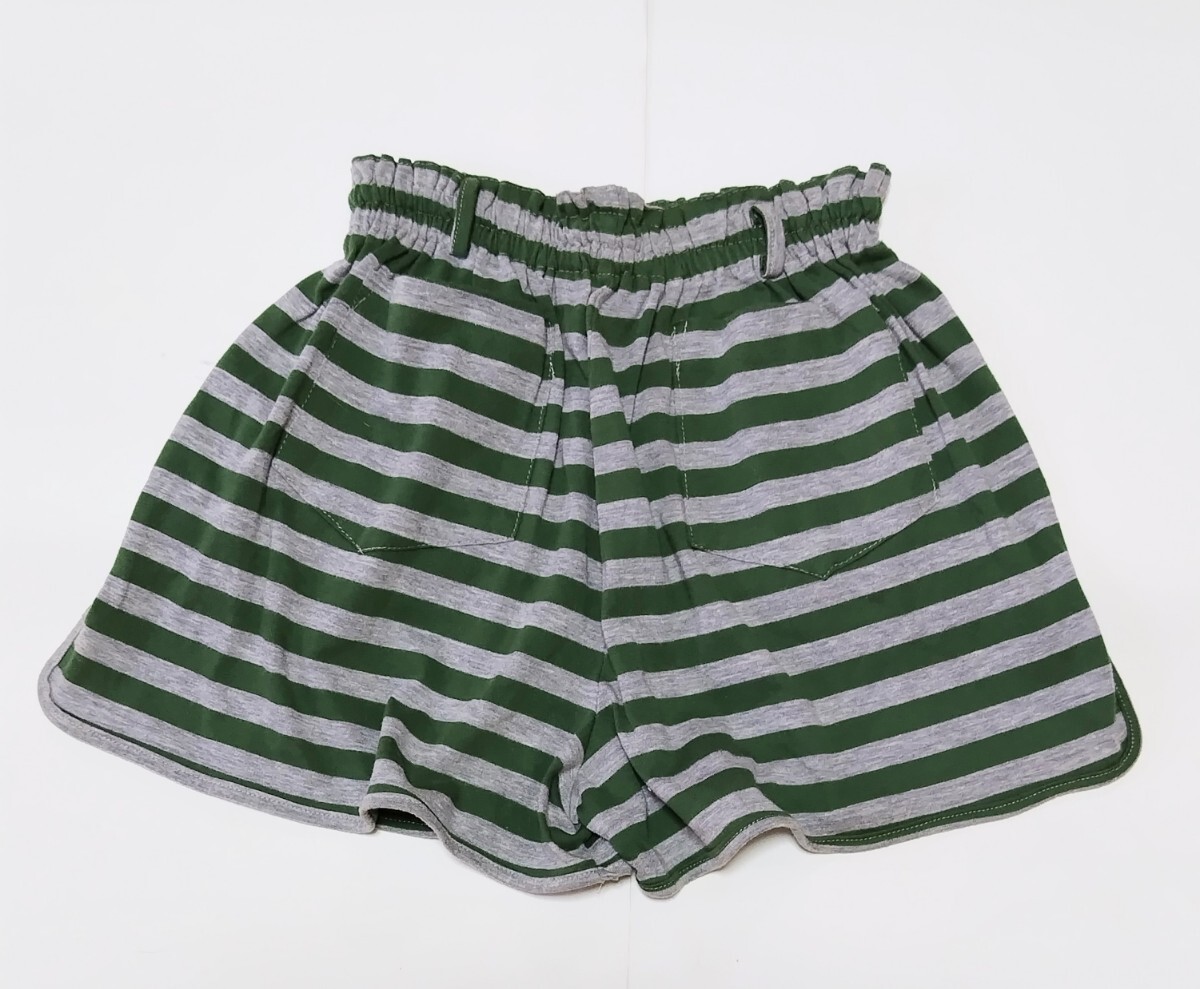 USED】 ホームウエア ショートパンツ ☆ ボーダー グリーン系xグレー ☆  150㎝ ☆ 後ろポケット ☆ ポイント消化