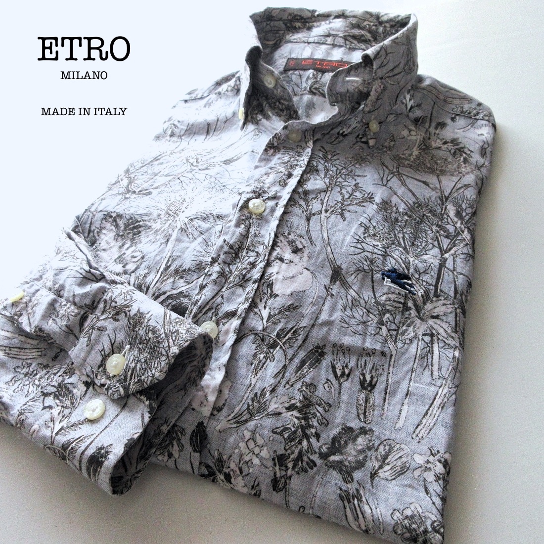 【ETRO エトロ / イタリア】高級 総柄 BD コットンシャツ 38!! (MADE IN ITALY)