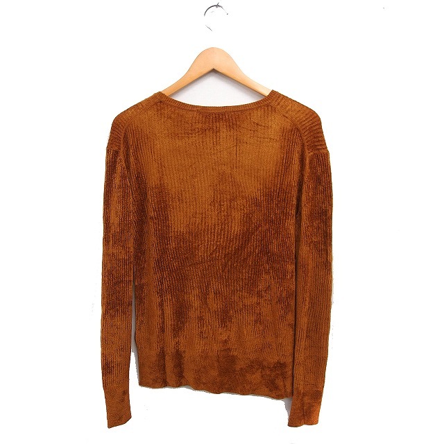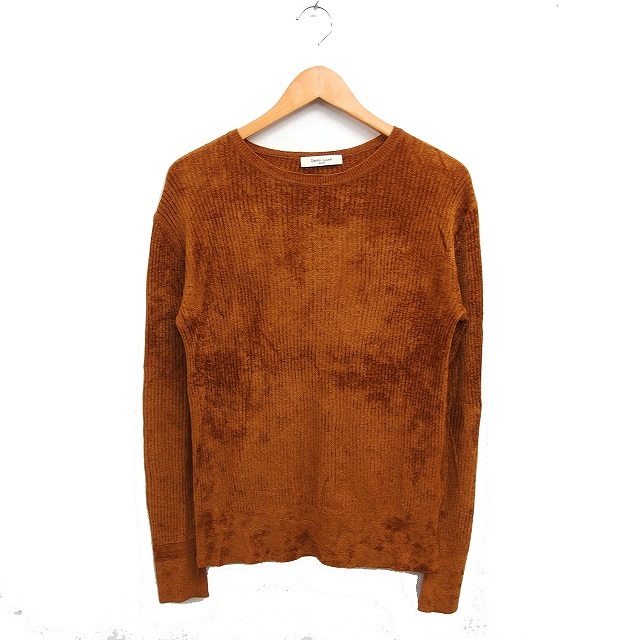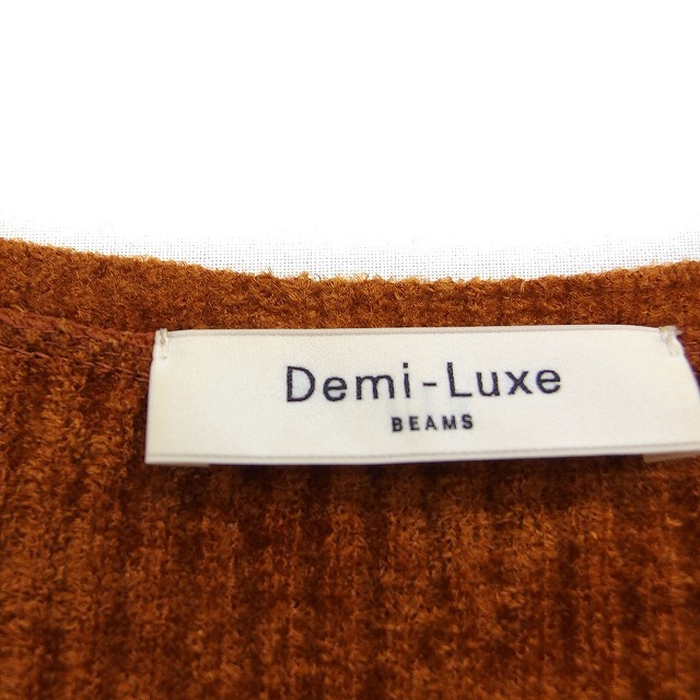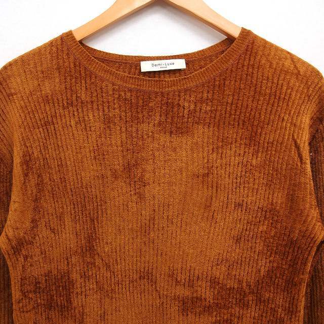 デミルクス ビームス Demi-Luxe BEAMS モール ニット セーター 長袖 丸首 無地 光沢 キャメル 茶 /FT31 レディース