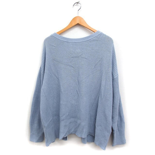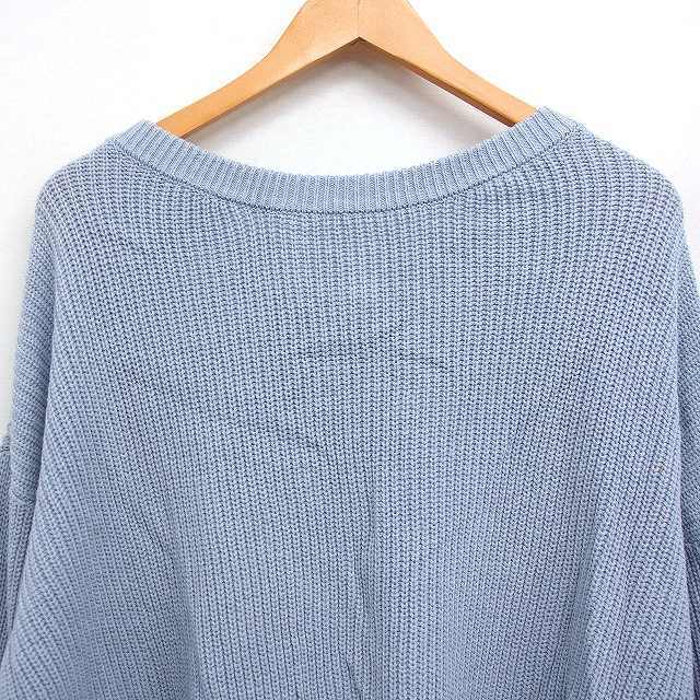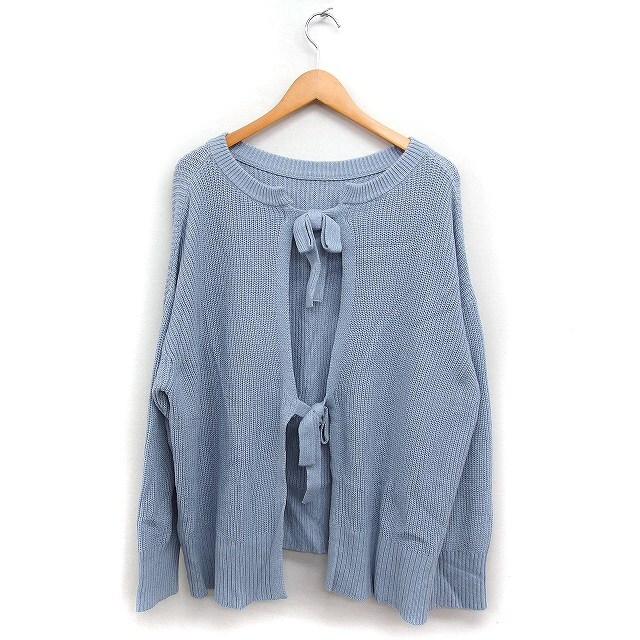 ロデオクラウンズ Rodeo Crowns バックリボン ニット セーター 長袖 丸首 無地 コットン 綿 F ライトブルー /FT23 レディース