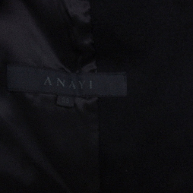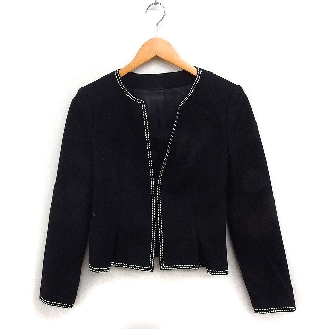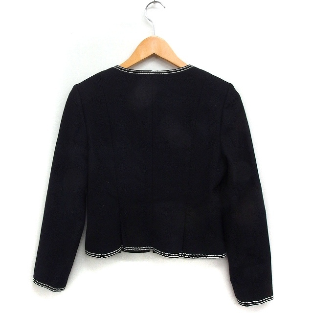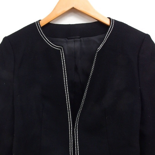 アナイ ANAYI ノーカラー ジャケット 配色ステッチ ウエストタック ウール 38 ブラック 黒 /FT46 レディース