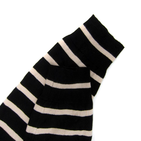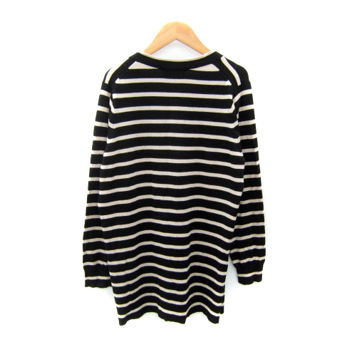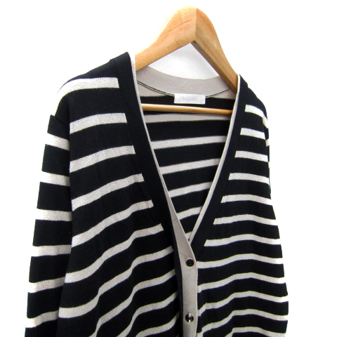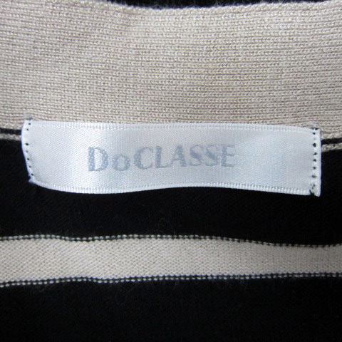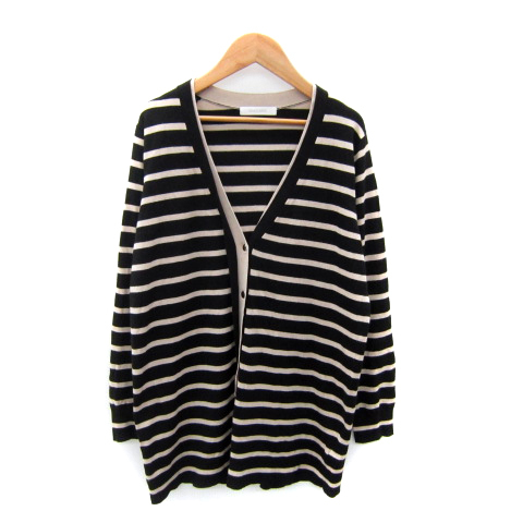 ドゥクラッセ DoCLASSE カーディガン ロング丈 Vネック ボーダー柄 L 黒 ブラック ベージュ /SY29 レディース